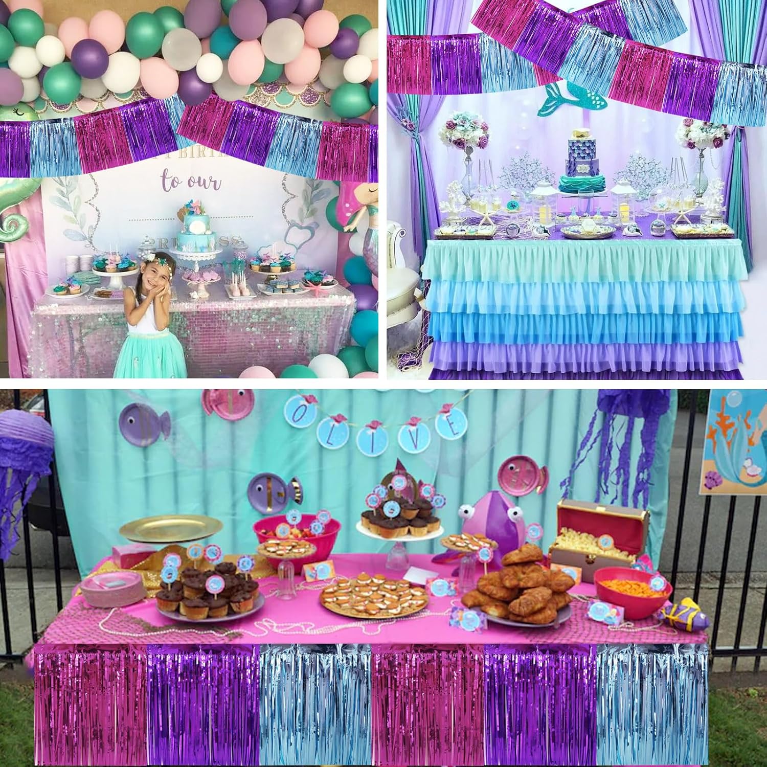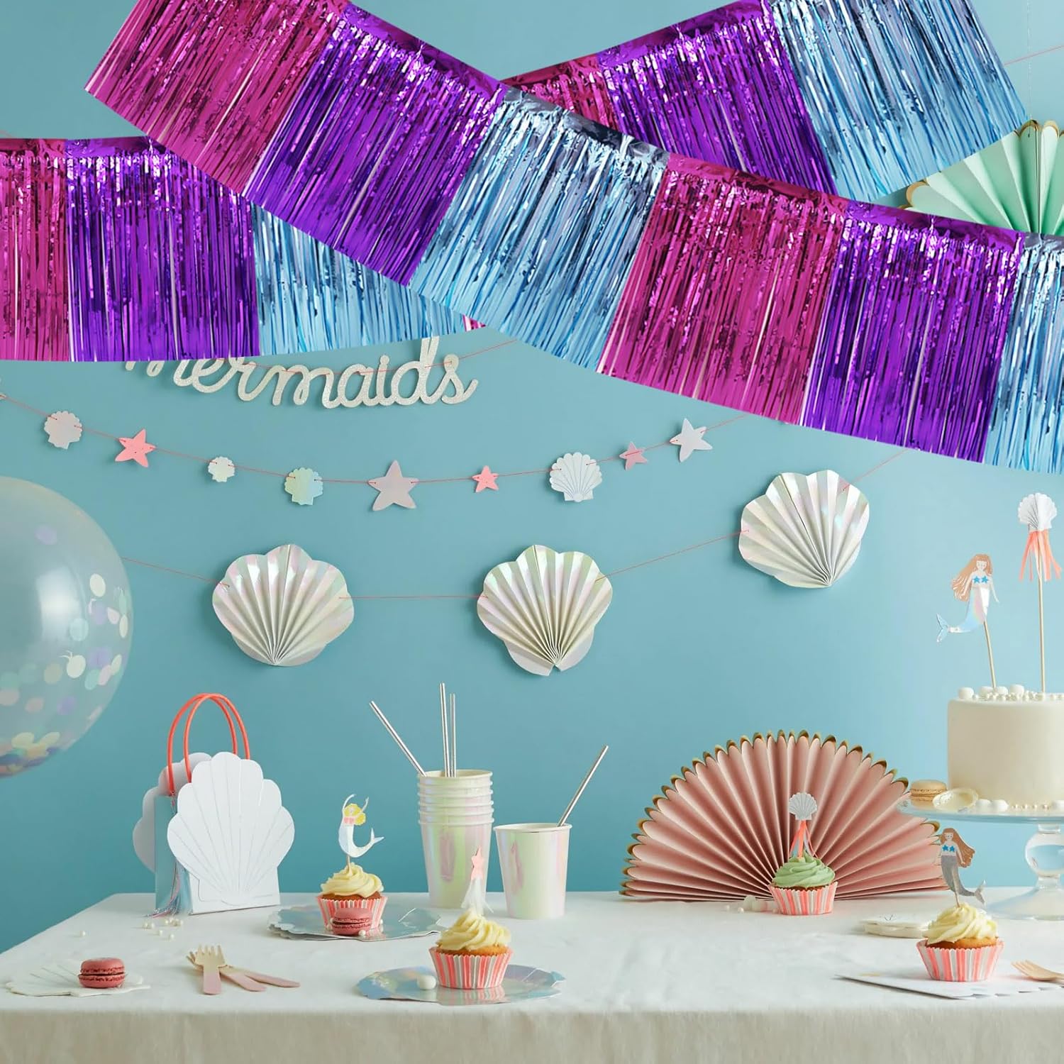BEISHIDA 3 Packs Metallic Foil Fringe Garland Blue Purple Pink Wall Hanging Tinsel Fringe Banners for Car Floats Bridal Shower Wedding Birthday Easter Graduation Holiday Party Decoration(30 Feet)