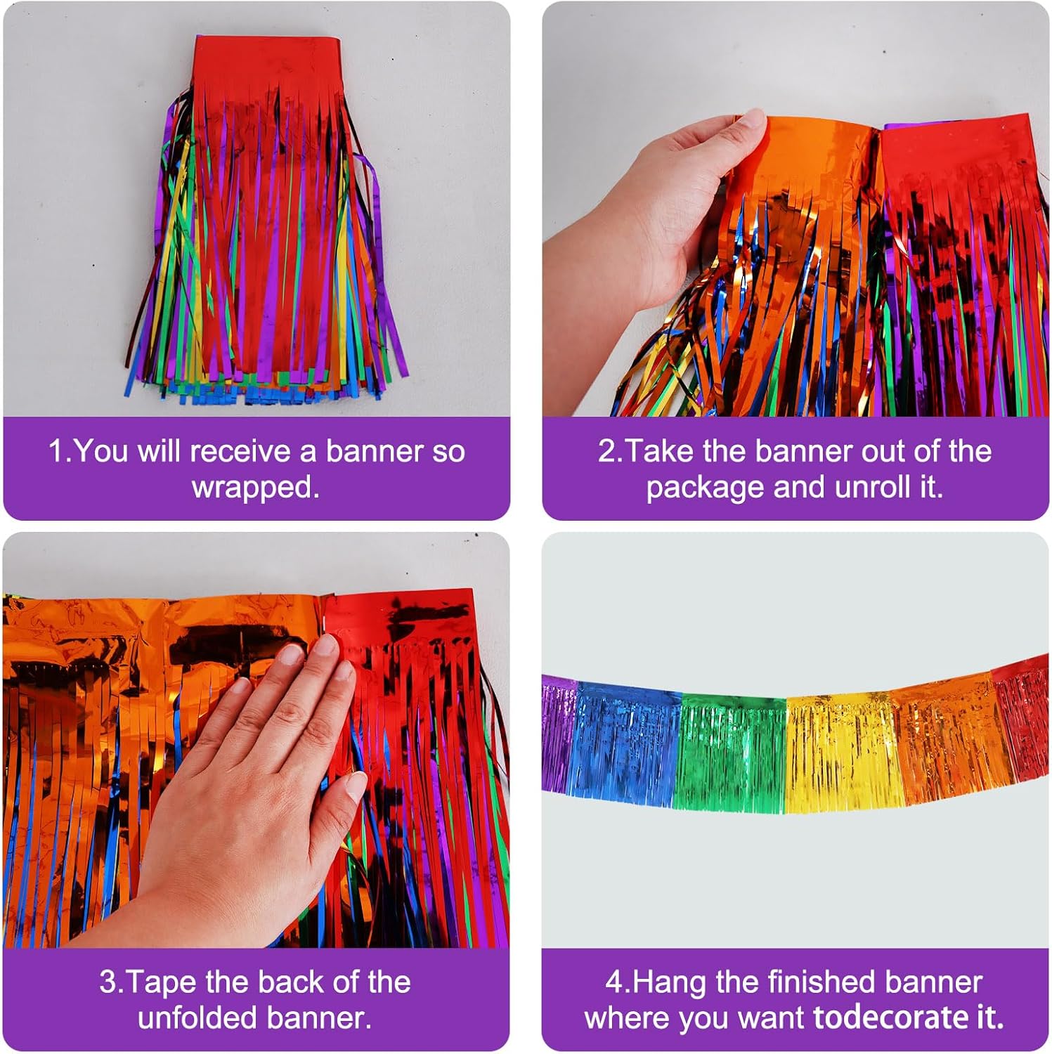 • 【Package includes】:3 Packs shiny fringed tassel banner, each tassel garland is about 10 feet long, enough to decorate your party.