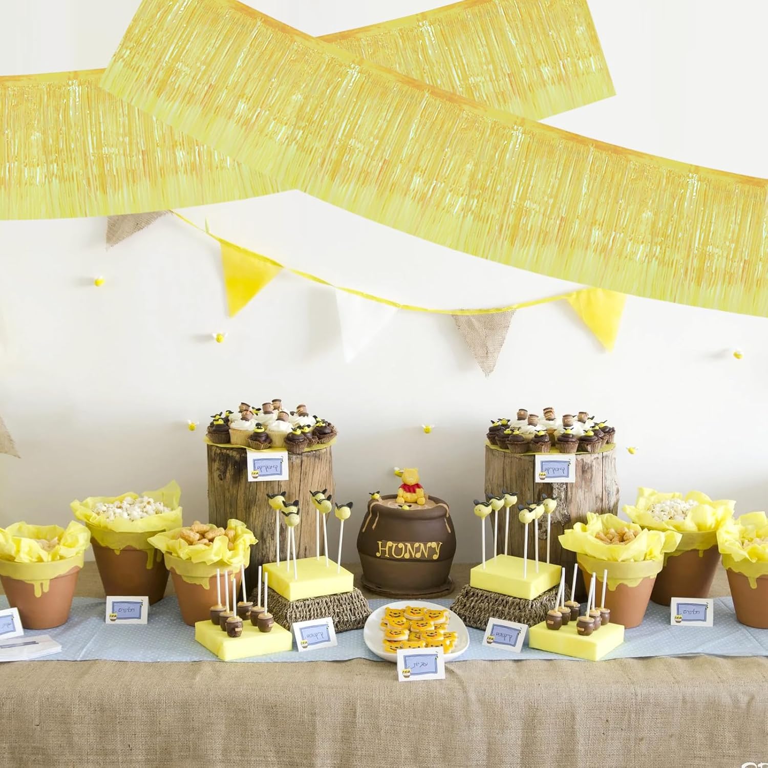 BEISHIDA 3 Packs Metallic Foil Fringe Garland Shining Yellow Wall Hanging Tinsel Fringe Banners for Car Floats Bridal Shower Wedding Birthday Easter Graduation Holiday Party Decoration(30 Feet)