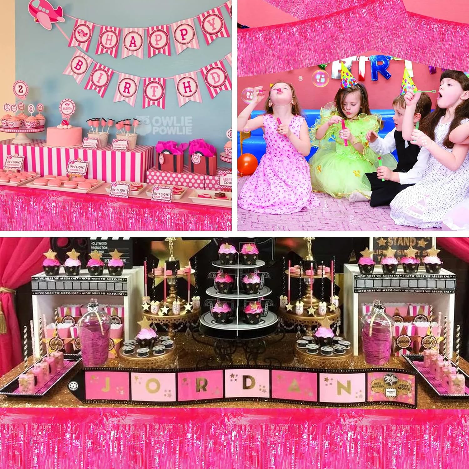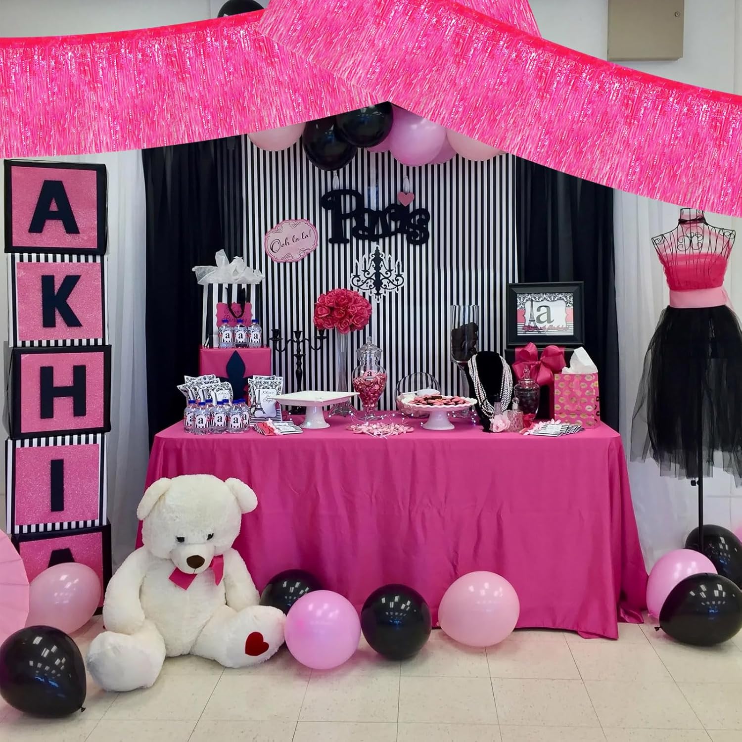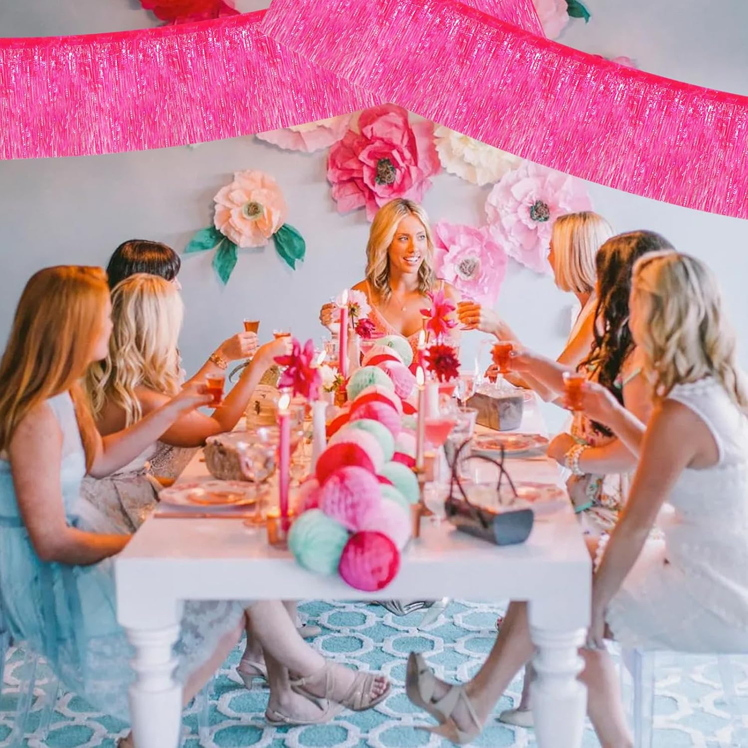 BEISHIDA 3 Packs Metallic Foil Fringe Garland Shining Dark Pink Wall Hanging Tinsel Fringe Banners for Car Floats Bridal Shower Wedding Birthday Easter Graduation Holiday Party Decoration(30 Feet)