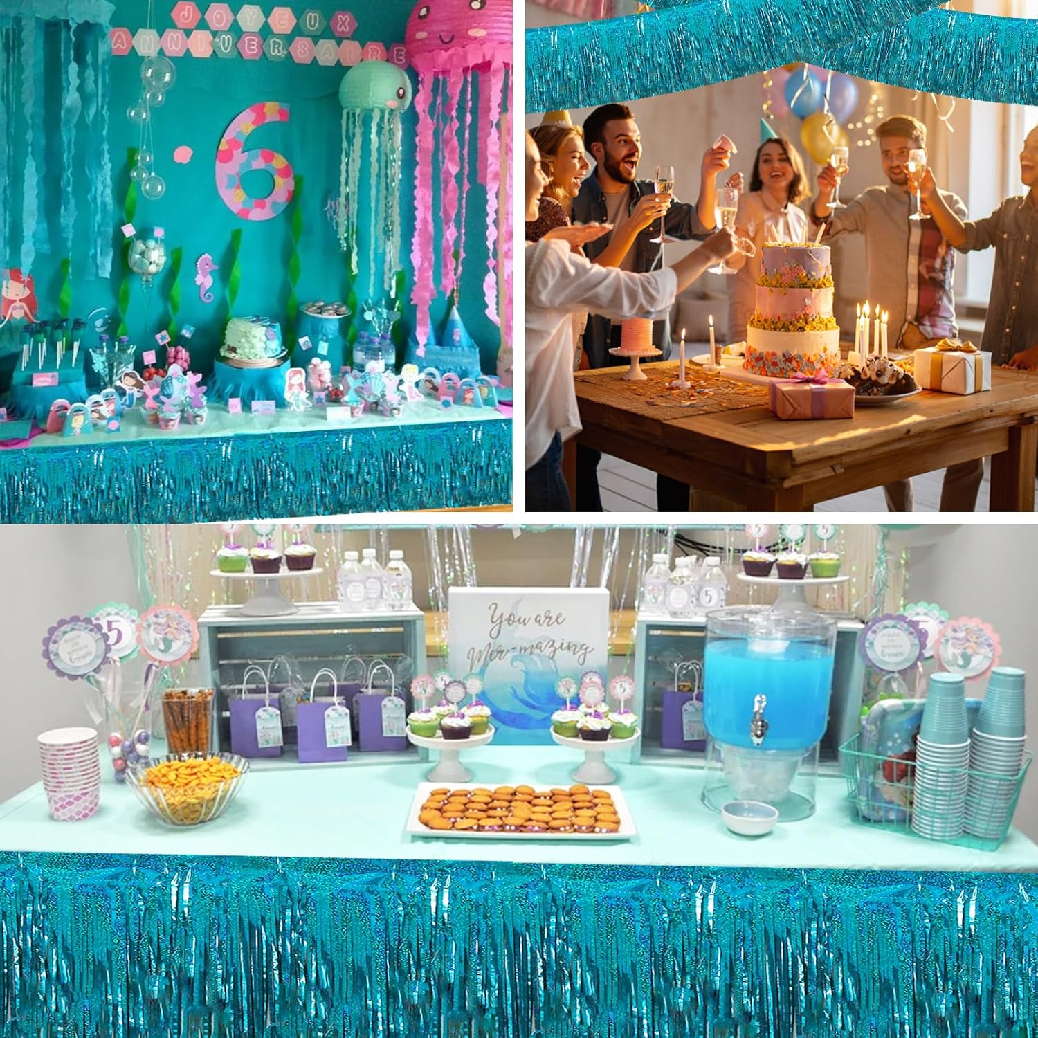 BEISHIDA 3 Packs Metallic Foil Fringe Garland Laser Lake Blue Wall Hanging Tinsel Fringe Banners for Car Floats Bridal Shower Wedding Birthday Easter Graduation Holiday Party Decoration(30 Feet)