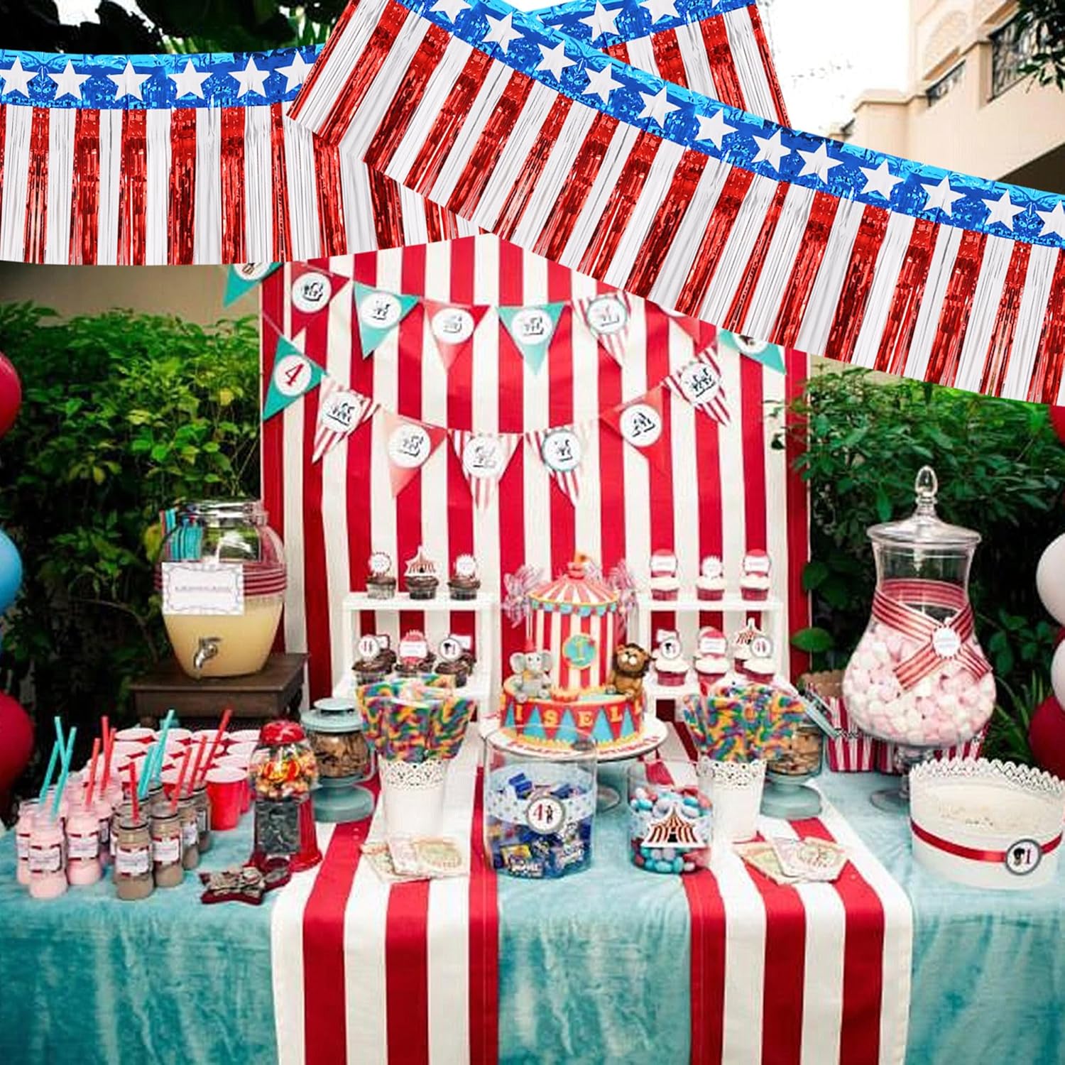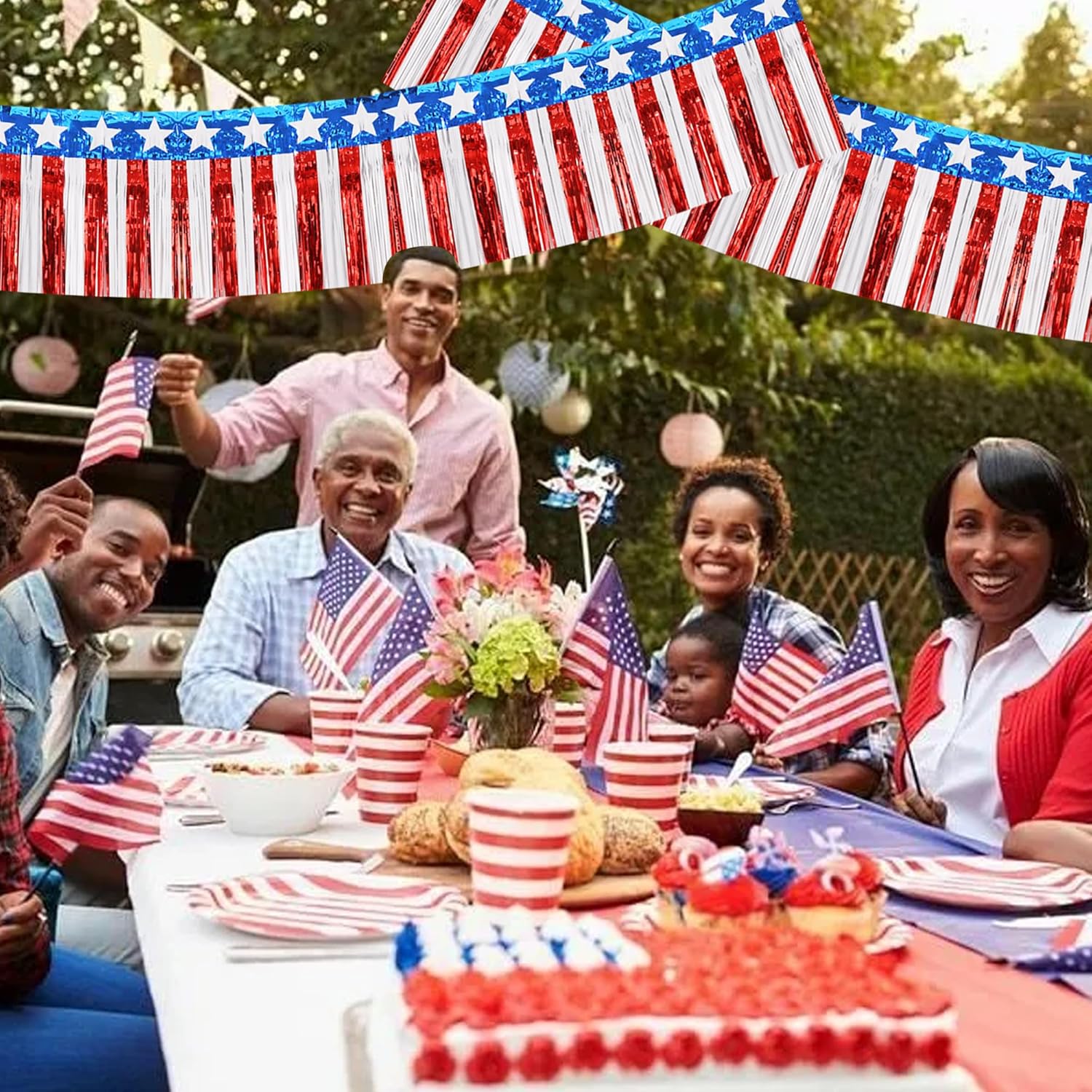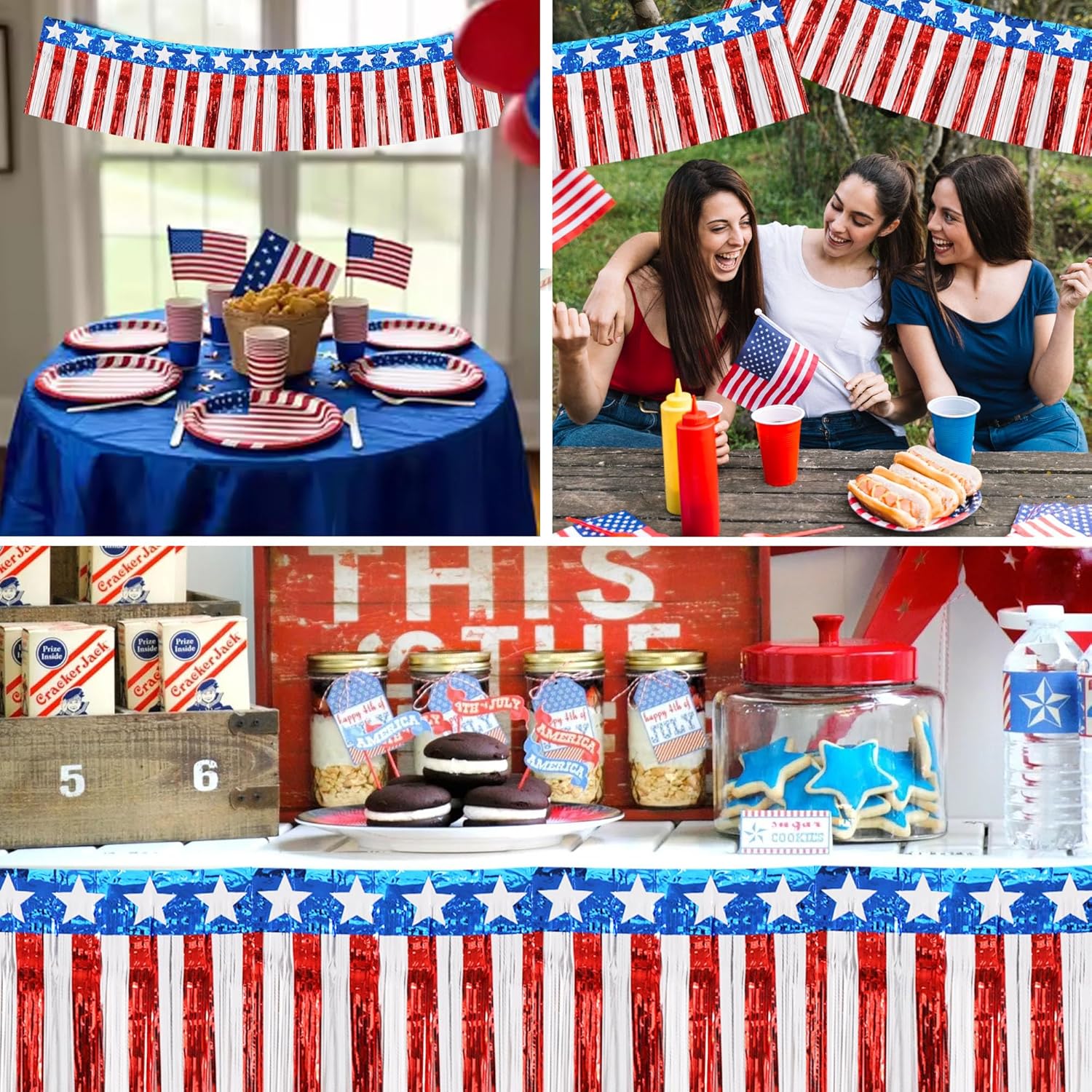 BEISHIDA 3 Packs Metallic Foil Fringe Garland Star Red White Blue Wall Hanging Tinsel Fringe Banners for Car Floats 4th of July Memorial Day Patriotic New Year Party Decoration(30 Feet)