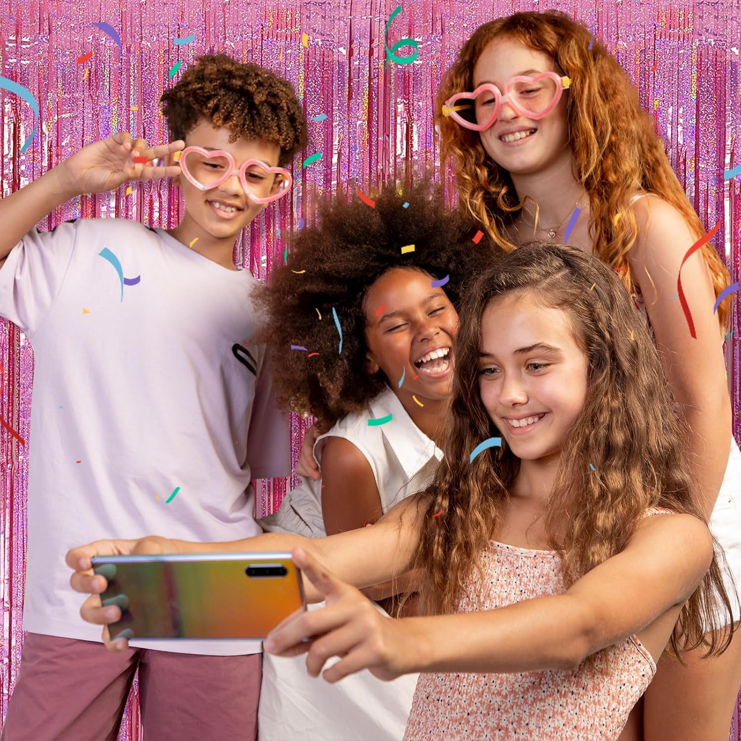 • Pink Fringe backdrop Set (5-Pack): Each dazzling curtain measures 3.28ft x 6.56ft – perfect for doors, walls, or photo booths! These extra-long foil streamers instantly transform any space into a party-ready celebration zone. Mix, layer, and customize your decor for the best results.