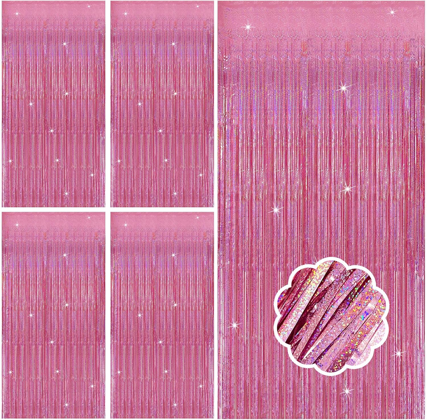 5 Pack Pink Tinsel Foil Fringe Curtains Tinsel Backdrop Sparkly Curtains Party Streamers for Valentines Bachelorette Holiday New Year Eve Celebrations Birthday Party