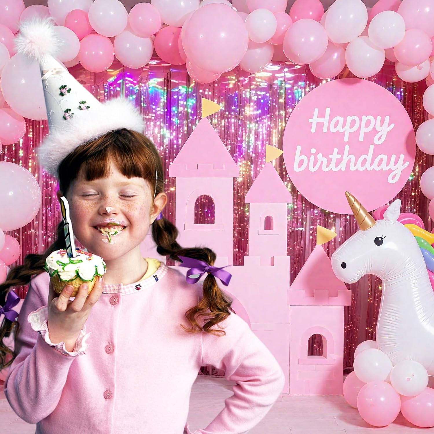 • Pink Fringe backdrop Set (10-Pack): Each dazzling curtain measures 3.28ft x 6.56ft – perfect for doors, walls, or photo booths! These extra-long foil streamers instantly transform any space into a party-ready celebration zone. Mix, layer, and customize your decor for the best results.
