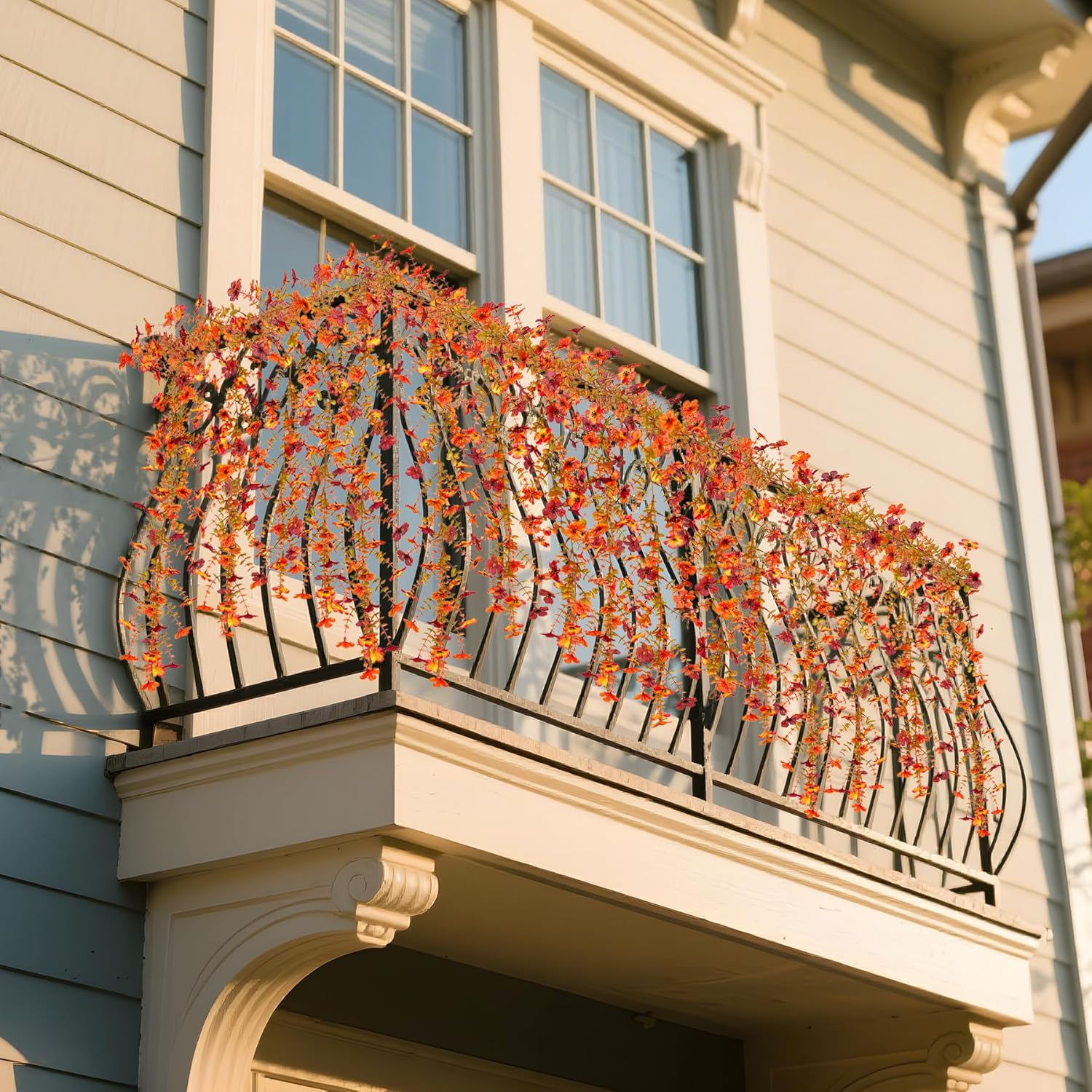• Wide Use: This fake flowers garland has a realistic appearance. Perfect for adding autumnal charm or year-round elegance to your home entryway, fireplace mantel, garden fence, balcony, wedding arches, photo backdrops, and event venues. Nice choice for indoor and outdoor decor, the effect is better when used in large quantities