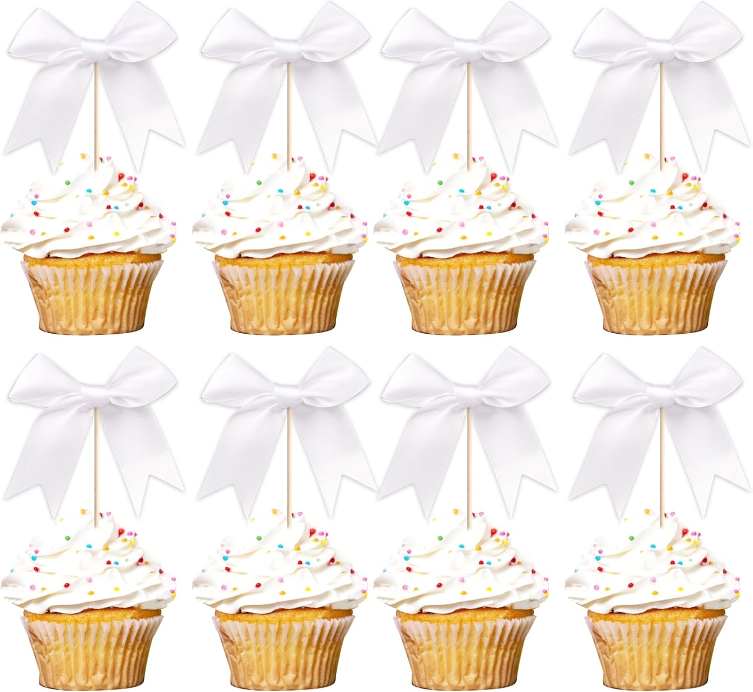 • No Assembled Required ! These bow cupcake toppers are assembled in advance,so you don't need to DIY it by yourself,which can save you time and effort during the process of party preparation; You can insert them into your cake or cupcakes directly.