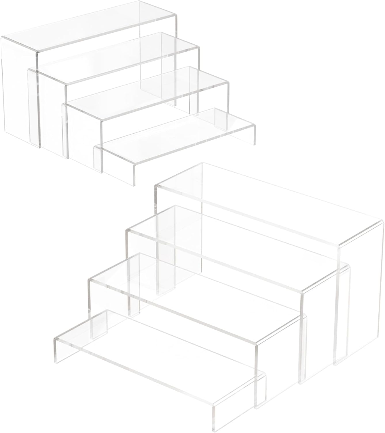 • 【Materials and Size】This black matte metal 8 pieces display stand comes in four sizes, namely 7.8*3*1.2 inches, 8.2*3*2.7 inches, 8.6*3*3.9 inches, 9*3*5.1 inches. Two sets of four sizes of displays stand,simply place the riser on the table, arrange your items, and display them, and you can turn any space into a place to show your personal style and appreciation of art and craftsmanship.
