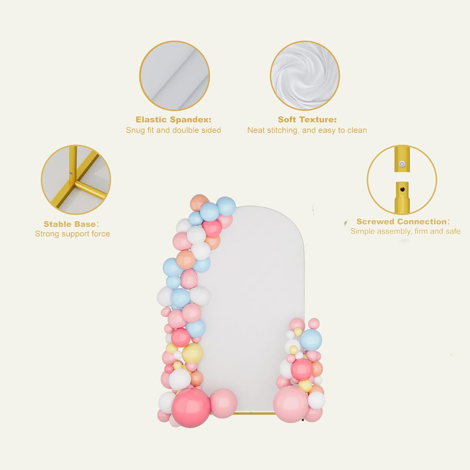 UDEAR 7.2FT Metal Arch Stand with White Cover, Arc Design with Fitted Cover, for Weddings, Parties, Baby Showers, Climbing Plants, Photo Backdrops