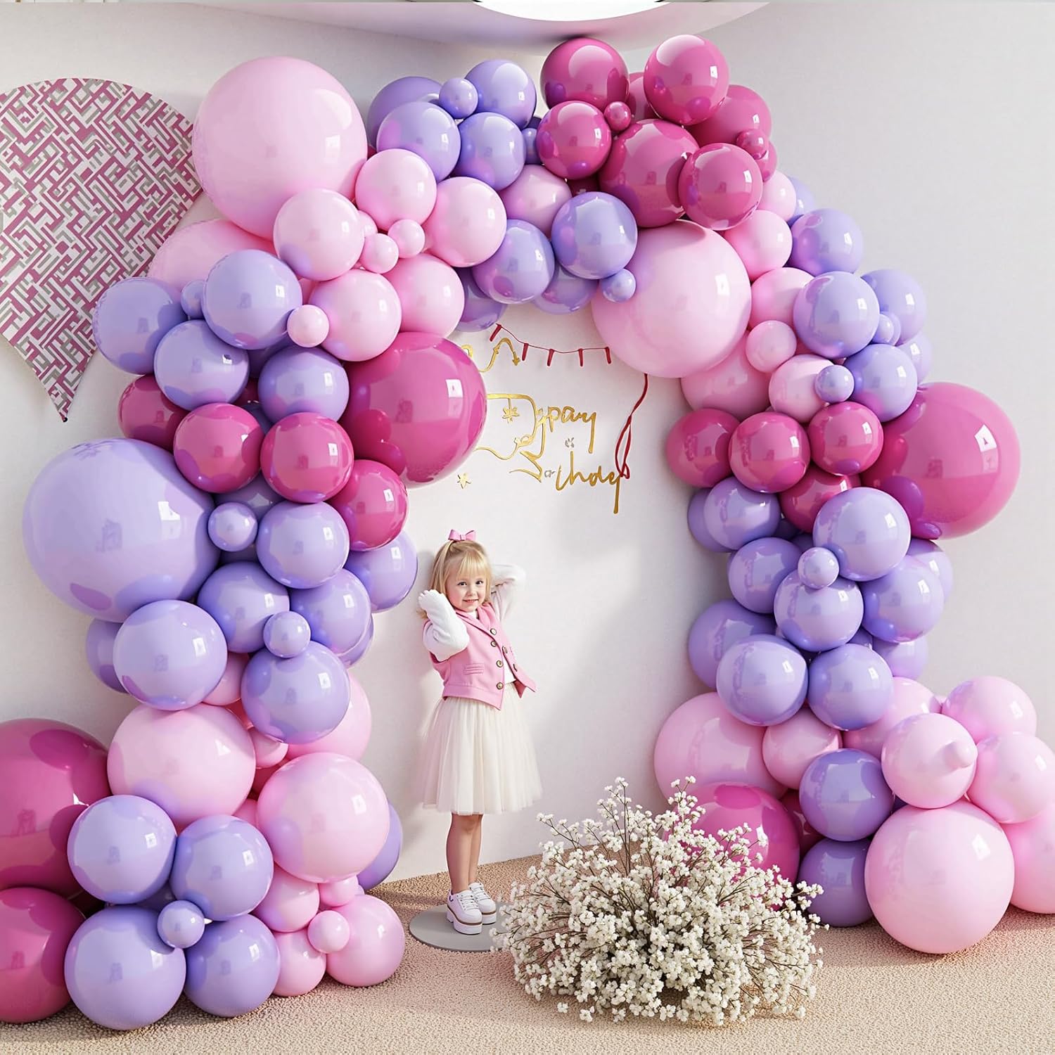 • PREMIUM MATERIAL: pink balloons and purple balloon arch kit of latex material,durable and not easy to burst, a variety of colors and sizes for you to choose, Bulk balloon are packaged by size separately, saving your time.meet your different uses. .