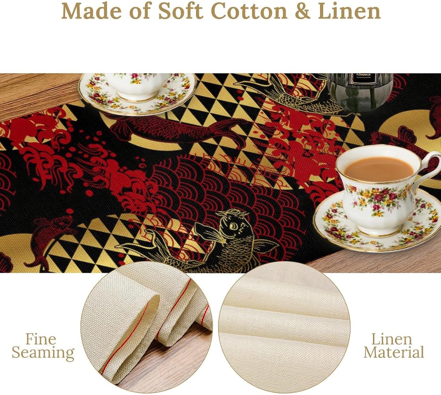 Japanese Table Runner Oriental Tradition Kio Fish Red Art Printed Burlap Runner Home Kitchen Dining Table Living Room Decor Fabric 1 Panel W13xL70in