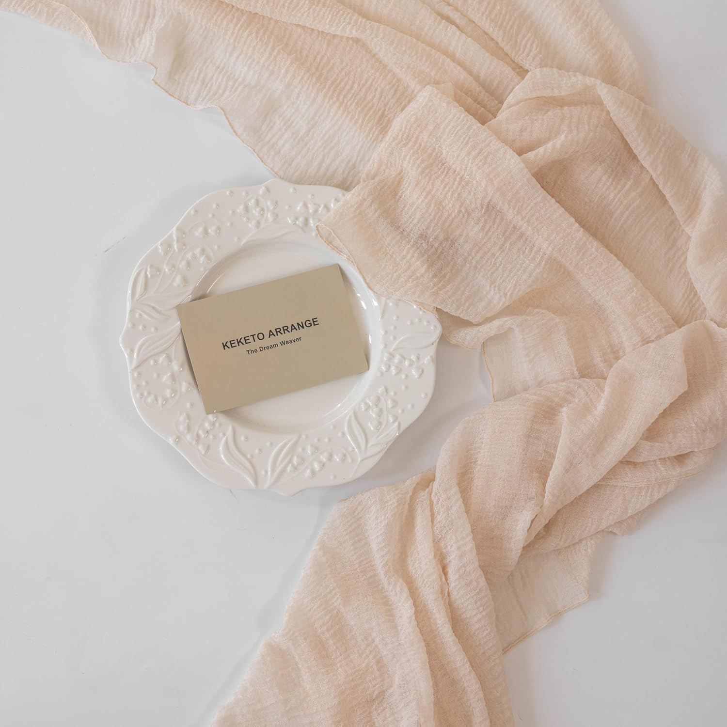 6Pcs Beige Gauze Rustic Cheesecloth Table Runner 120 Inch 10 FT for Wedding Baby Shower Bridal Shower Birthday Engagement Garden Outdoor Party Long Sheer Boho Decorations