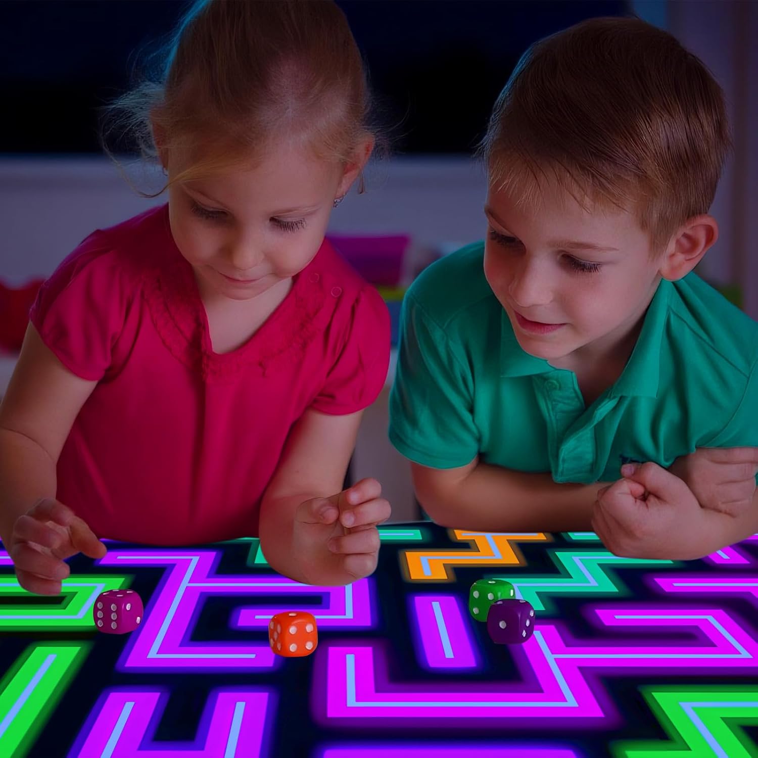 • Bright Fluorescent Color: the light up dance floor shines brightly under UV blacklight, with fluorescent orange, fluorescent pink, fluorescent green and fluorescent blue maze route staggered against each other, making it simple to draw the attention of others; Please note that it will have the effect of fluorescence, but it needs to be irradiated by purple lamp to have the effect; If it is not irradiated, it is a normal pattern
