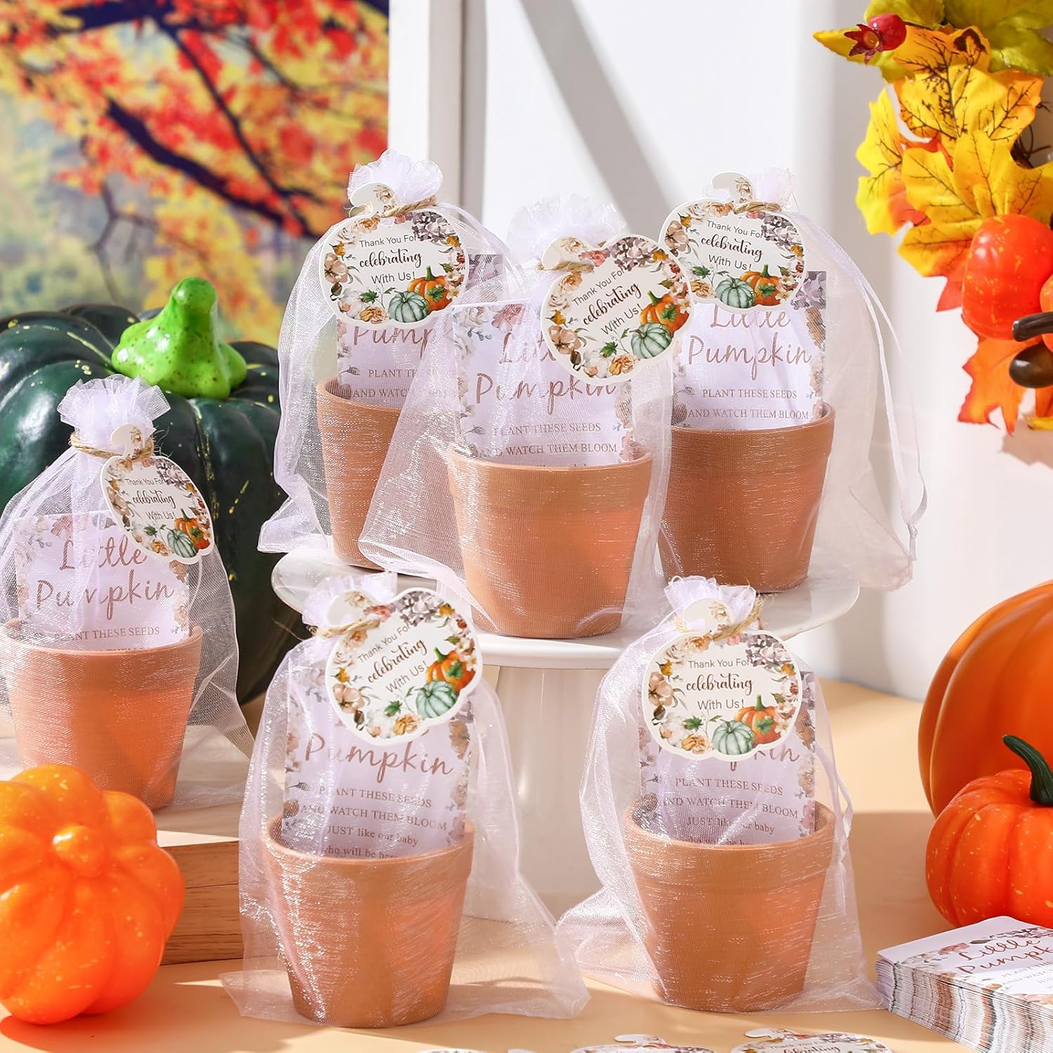 Ctosree 50 Sets Fall Baby Shower Seed Packet for Guests a Little Pumpkin is on The Way Gifts Include Self Adhesive Seed Packets Flowerpot Thank You Tags Organza Gift Bags for Baby Shower Party Favors