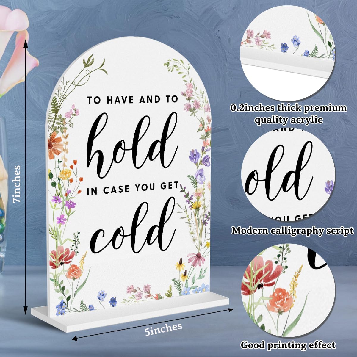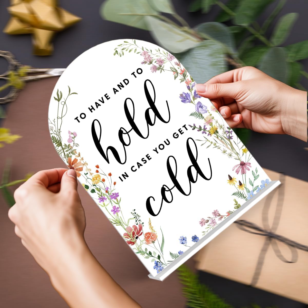 Acrylic Wedding Signs, To Have And To Hold Signs for Marriage Reception, Bridal Shower Decorations, Modern Arched Round Top Acrylic Table Top Sign with Holder for Wedding Party (White Wildflowers)