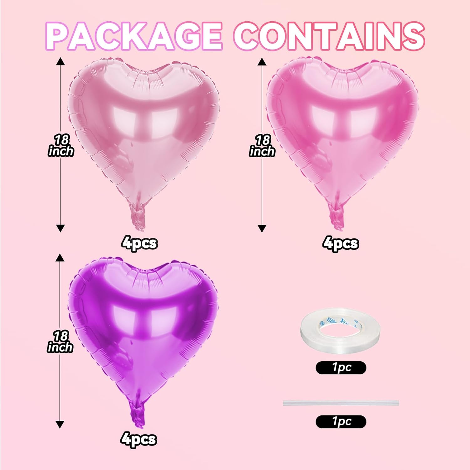 • Pink Heart Balloons:This 18 inches heart shaped balloons includes 4* hot pink heart balloons, 4* pearl pink heart balloons, 4* pink heart balloons, 1* ribbon, 1*straw, adding romance and warmth to your celebration. These large heart balloons will be the highlight of your party decorations, creating an atmosphere of love for everyone.