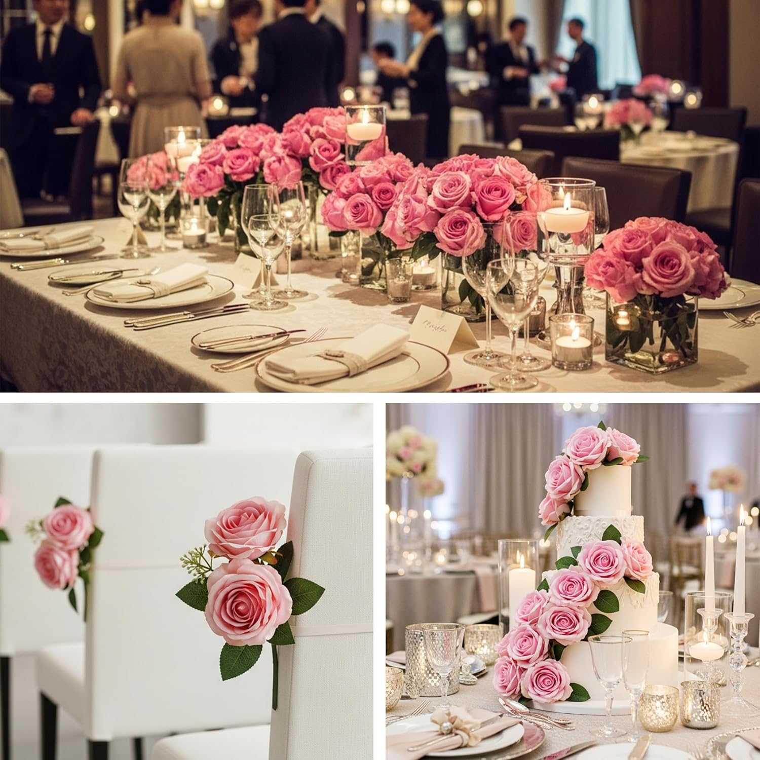 • Abundant Floral Value: Get 60 stems of pink silk roses artificial flowers bulk! This generous quantity provides incredible value, allowing you to create lavish displays like full pink rose bouquets, lush table garland, or stunning wedding arches without breaking the bank