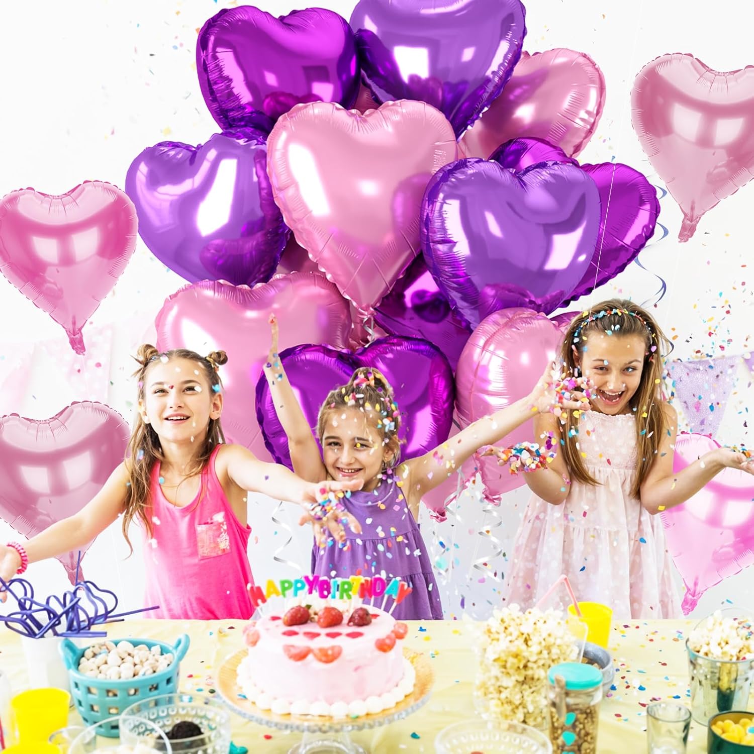 • Pink Heart Balloons:This 18 inches heart shaped balloons includes 4* hot pink heart balloons, 4* pearl pink heart balloons, 4* purple heart balloons, 1* ribbon, 1*straw, adding romance and warmth to your celebration. These large heart balloons will be the highlight of your party decorations, creating an atmosphere of love for everyone.