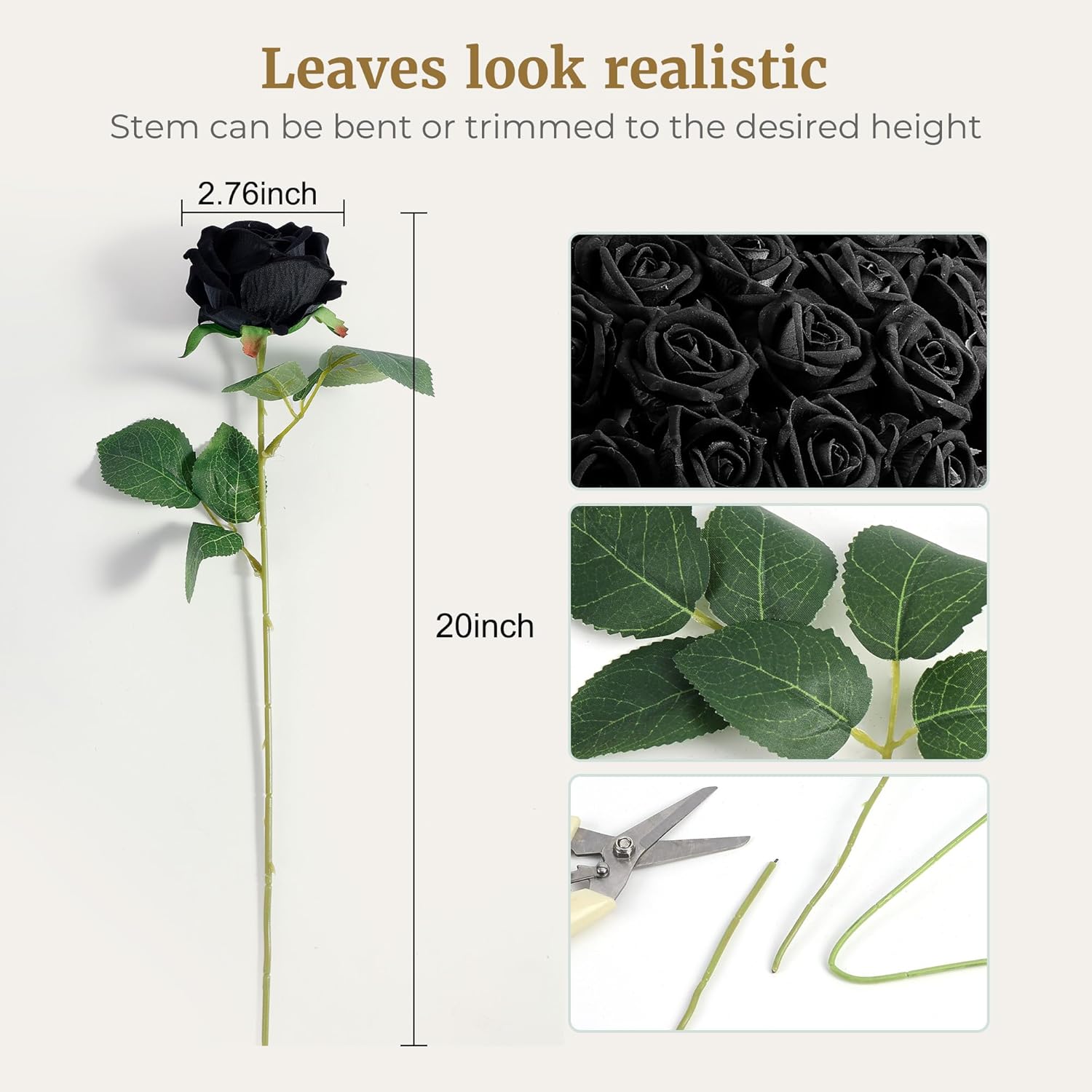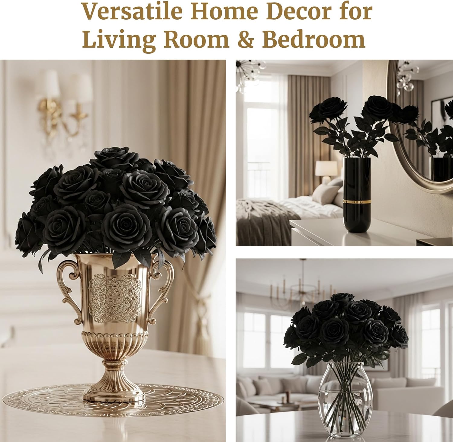 • Durability for Year-Round Use: Unlike fragile fresh blooms, these black artificial roses resist wilting, tearing, and UV damage—making them ideal for holiday decorating, graduation events, or Mother's Day gifts. Their sturdy black foam roses construction withstands housewarming setups and photo shoots, maintaining elegance through seasons