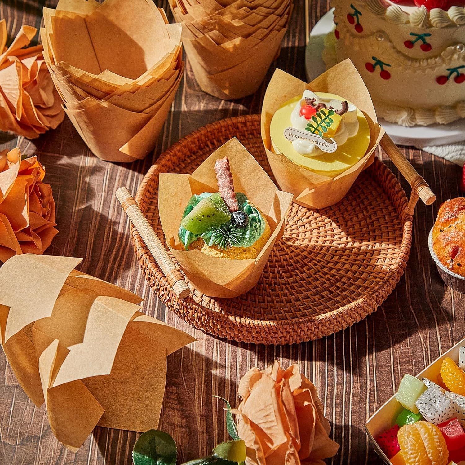 • Quality Greaseproof Paper: crafted with quality greaseproof paper, these tulip muffin liners offer grease resistance; Feel the difference in your baking experience as they can withstand high heat temperatures, avoid easy deformation or fading, and can be stored over a long period