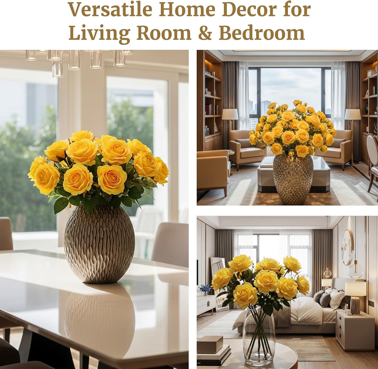 • Worry-free Beauty & Pet-Safe Roses: Pollen-free yellow artificial roses eliminate allergens, making them safe for sensitive events like baby showers or anniversary parties. Great materials ensure pet-friendly indoor decor, providing worry-free beauty for allergy-prone spaces and long-term displays