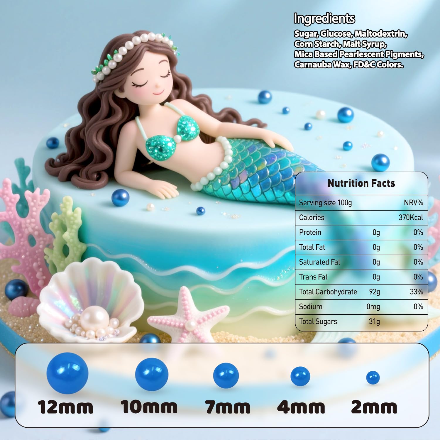 • Safe & Certified Pearls: Food-grade blue pearls sugar sprinkles made with non-GMO ingredients, 0% preservatives. Kosher/Halal-certified in facilities with no allergens (soy/nut/dairy). Tamper-proof sealed for safety.