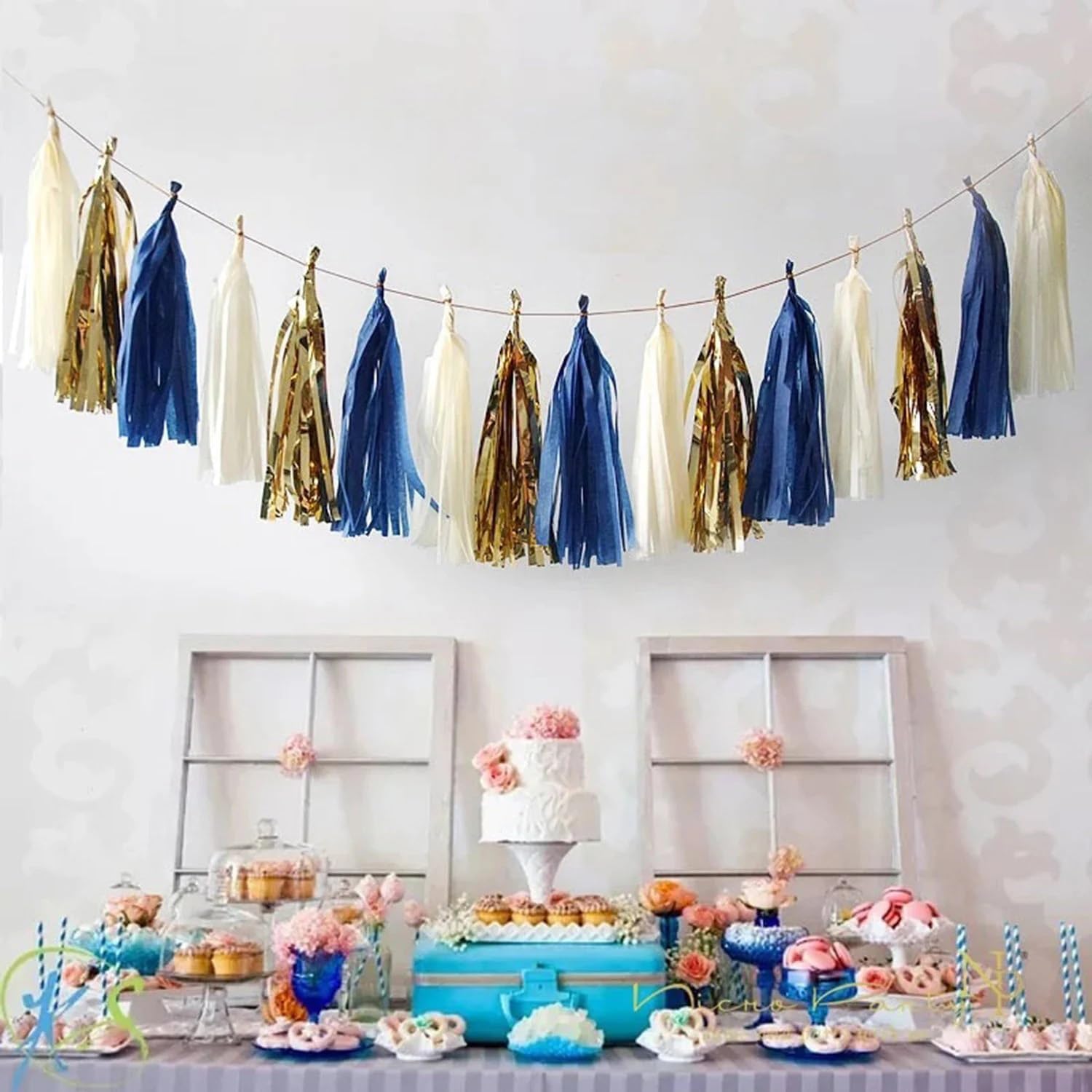 GAKA Navy Blue and Light Blue Tissue Paper Tassel(3 Colors),Paper Tassel Garland Banner for Party Decor Supplies,15 PC