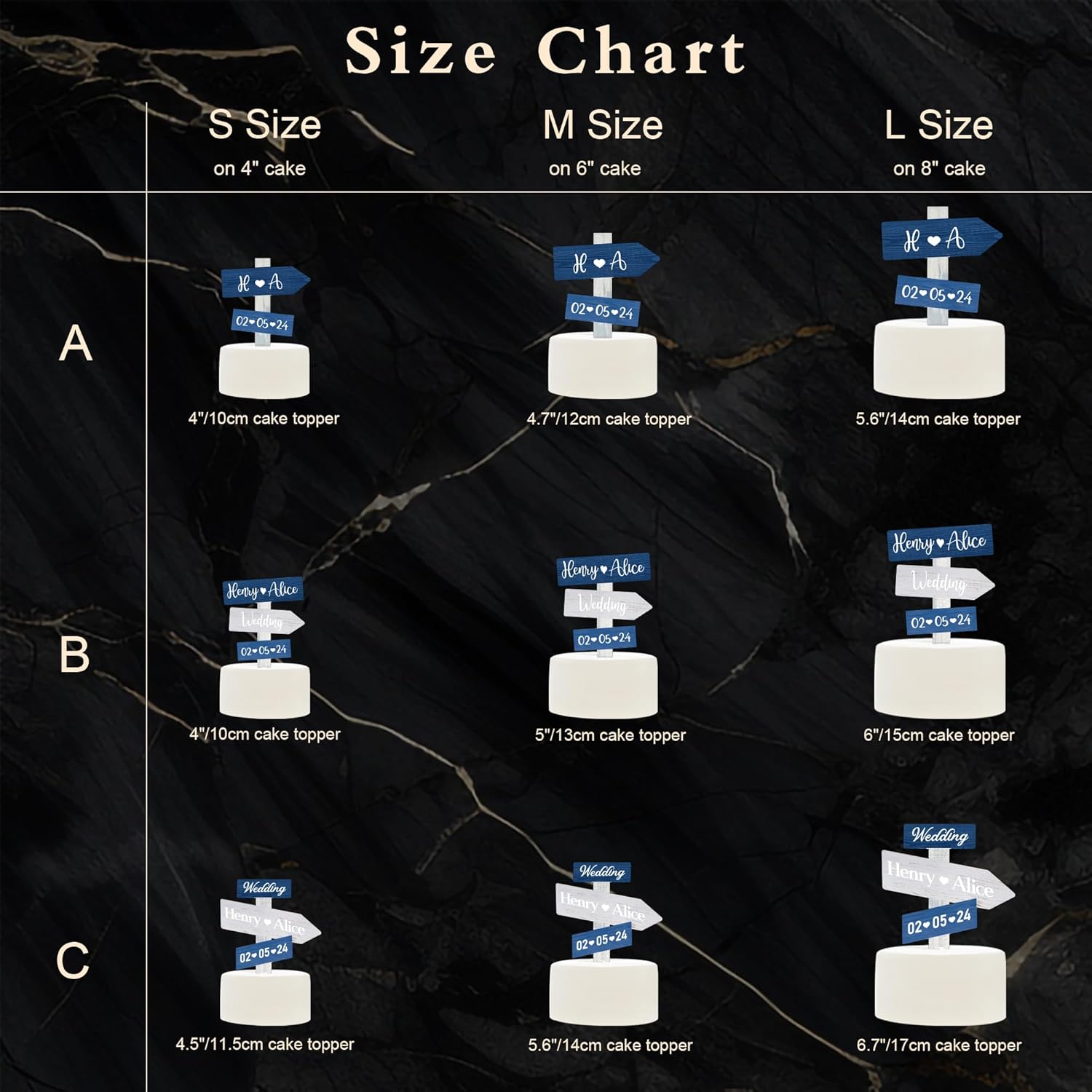 • Size options & Design options : The cake topper is available in 3 sizes and 3 designs. Please choose the best one to fit your cake.