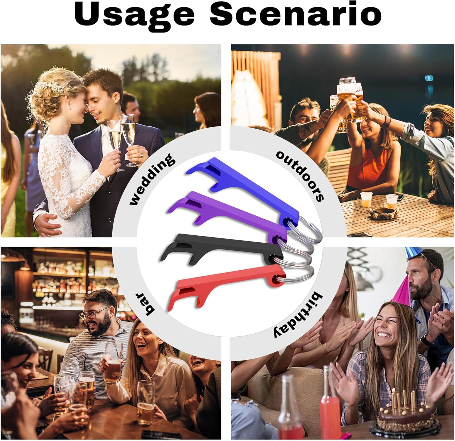 • Applicable Occasions: These keychain bottle openers are great for wedding gifts, family gatherings, birthday parties, company celebrations,trade shows, graduation ceremonies and giveaways in Brewery, Bar and Party.