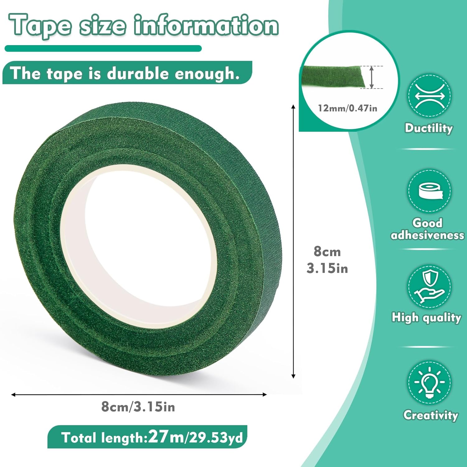 • Floral Tape for Bouquets: Dimensions: each roll is 0.47 inch (1.2)CM in width and 30 yards(27M) in length. Strong and Stretchable, it tears easily, lightweight, and flexible to use