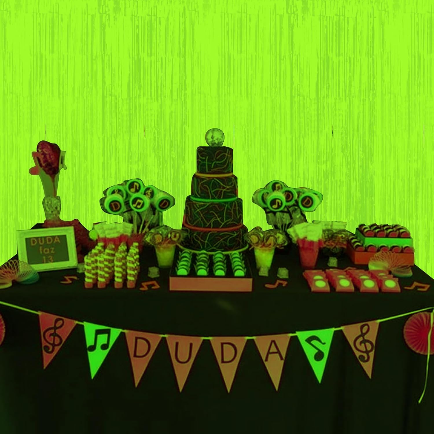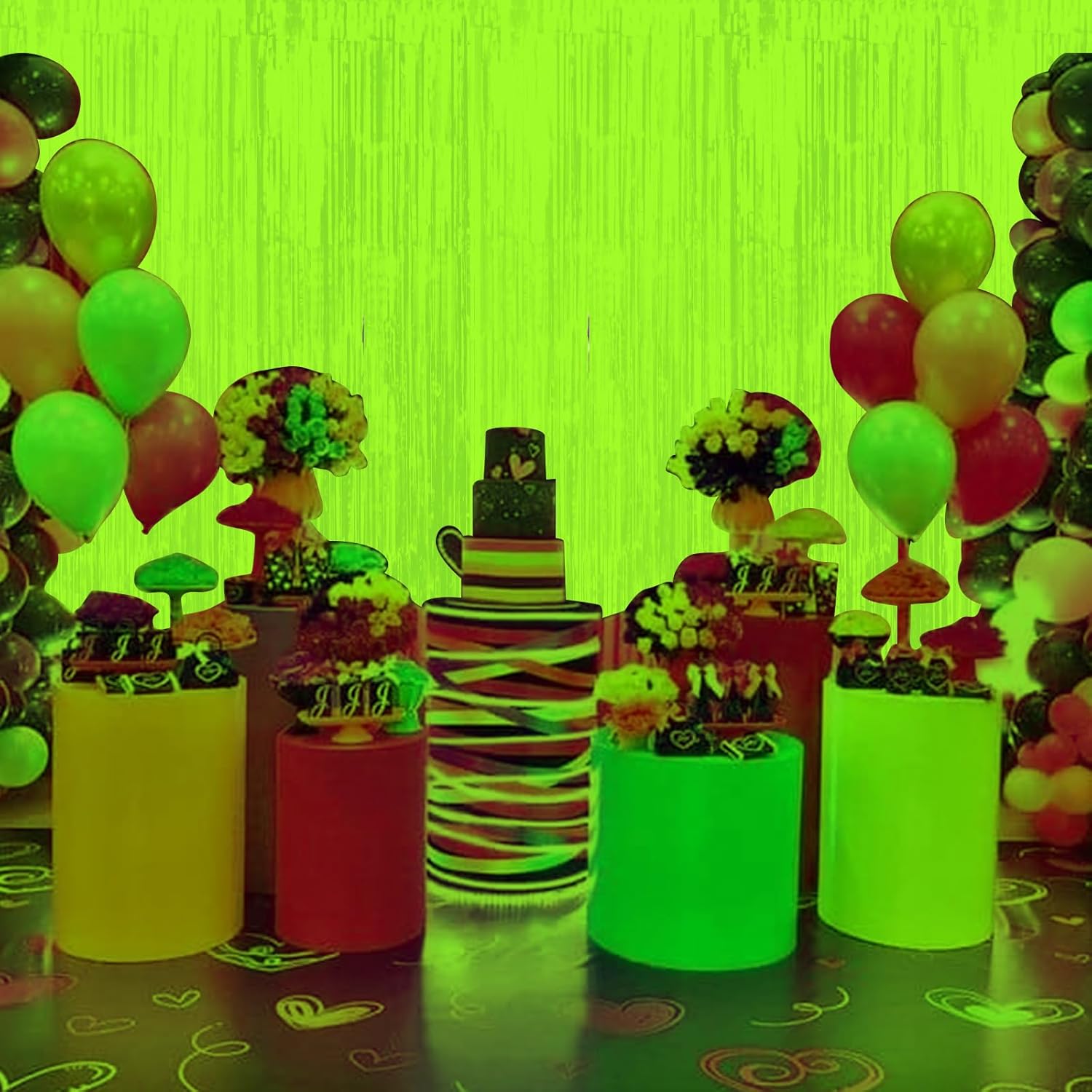 • What’s Inside: Included in the package are 3 yellow glow in the dark foil fringe curtains, each measuring 3.3 x 6.6 ft, making them suitable for decorating most scenes. Perfect for creating an impressive neon backdrop for neon birthday party decorations and glow in the dark party supplies