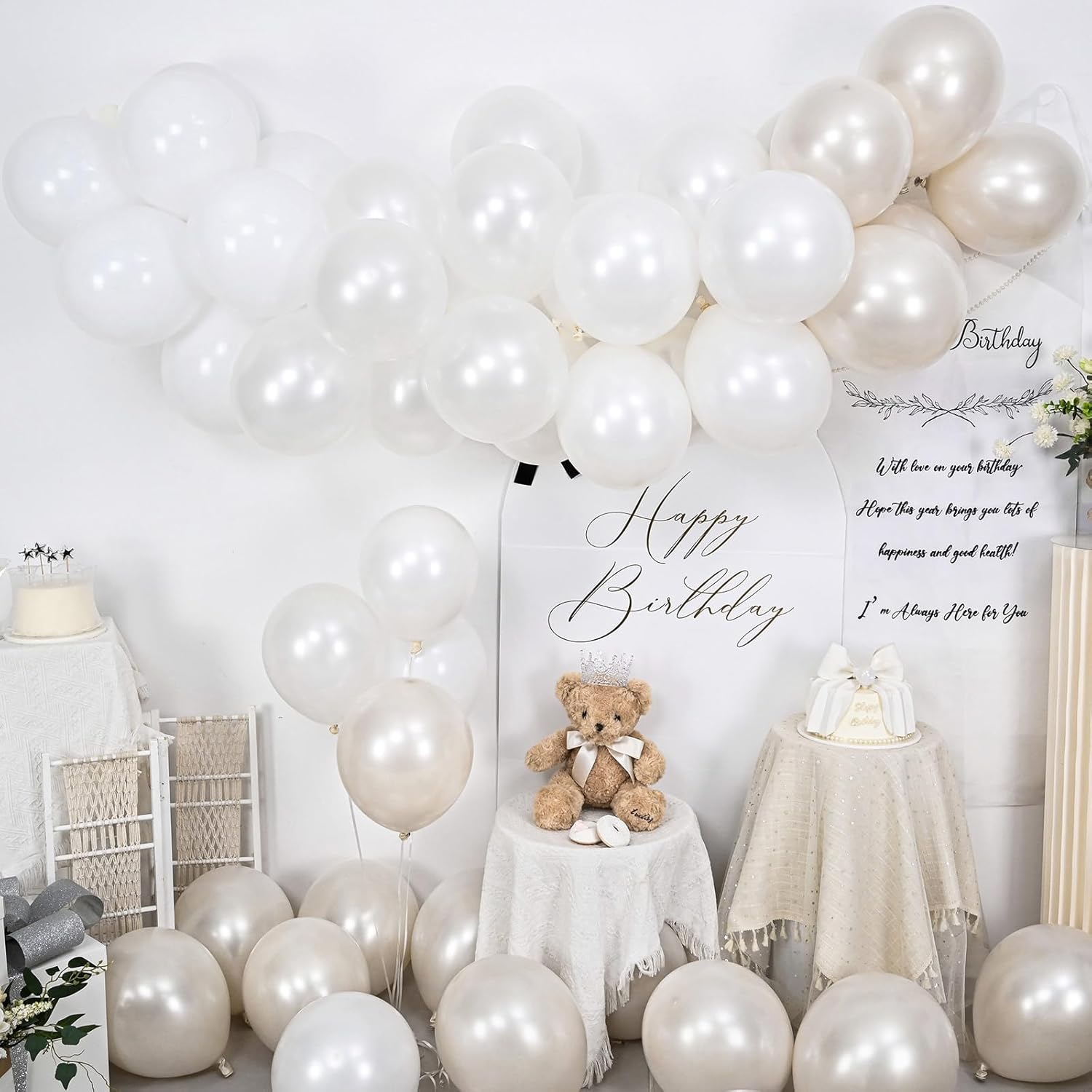 • Ideal for Any Occasion: This versatile balloon set is great for anniversary, birthdays party and bachelorette party decorations. The elegant color scheme of double stuffed pearl and sand balloons, double stuffed pearl and white balloons, white balloons and thick pearl balloons works for both modern and classic themes, perfect for indoor or outdoor parties