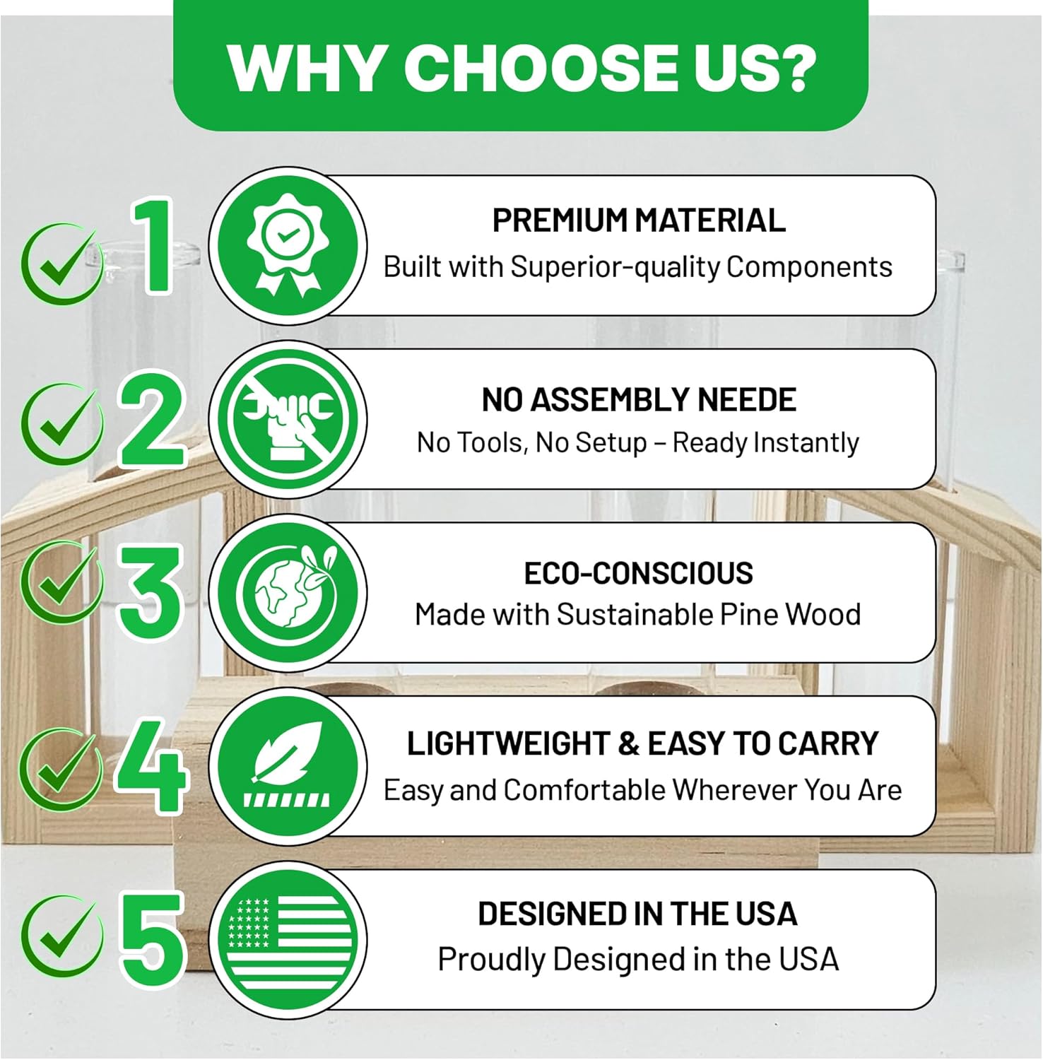 • Versatile Test Tubes: Equipped with four glass test tubes for plants, this propagation station allows for multiple plant cuttings. These test tube vases for flowers offer a unique way to nurture your plant clippings while adding charm to your decor.