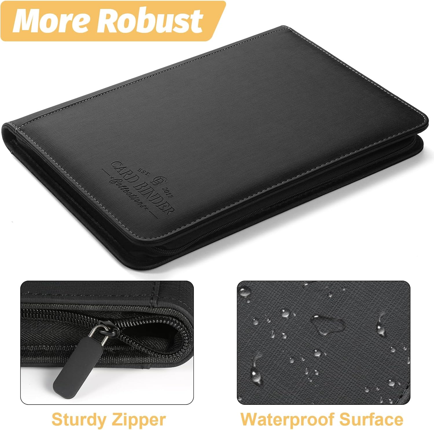 • 【Design Advanced】9-Pocket Trading Card Binder with black middle material gives cards a classic framed look and enhances the art on each cards.And compatible with all standard card sleeves.