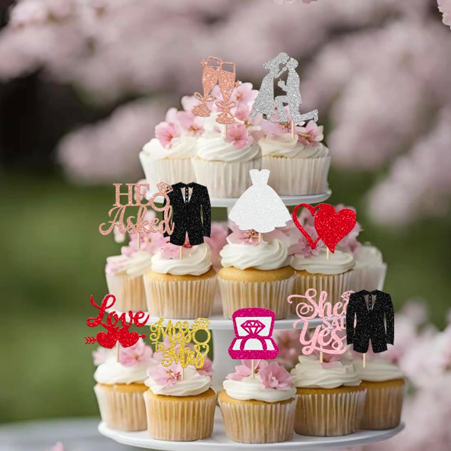 30 Pack Bride to be Cupcake Toppers Glitter Diamond Ring Love I Do Cupcake Picks Miss to Mrs He Asked She Said Yes Bridal Shower Wedding Engagement Bachelorette Cake Decorations Party Colorful