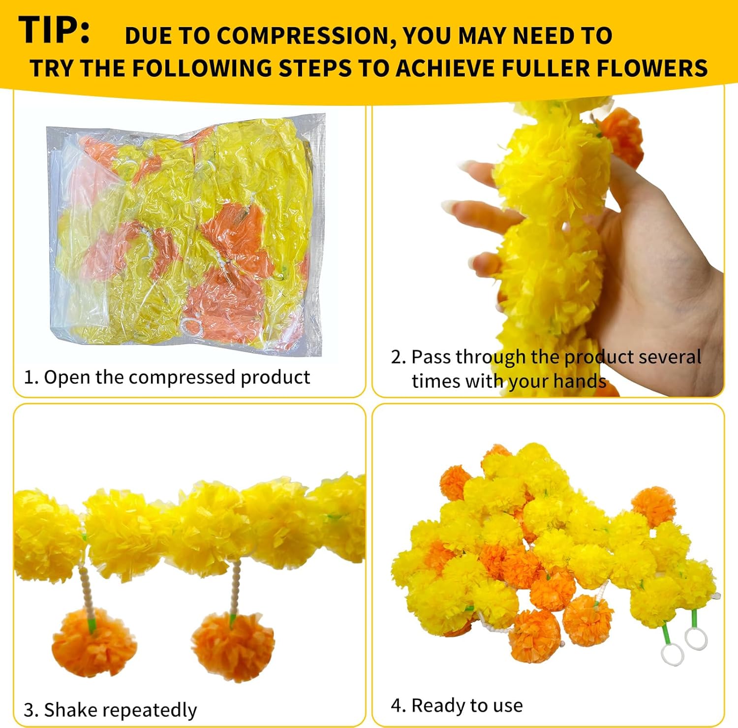• Durable & Long - Lasting:Made from artificial materials, these marigold garlands won't wilt, fade, or shed. Enjoy their beauty season after season without the hassle of maintenance
