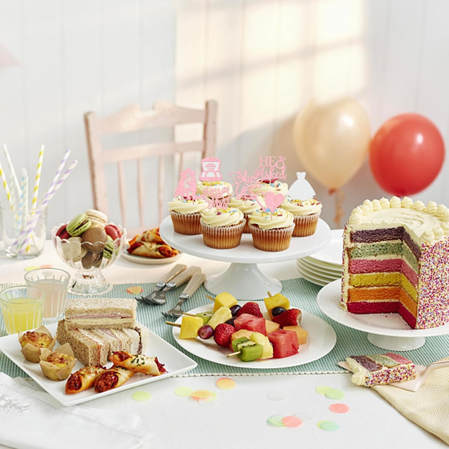 30 Pack Bride to be Cupcake Toppers Glitter Diamond Ring Love I Do Cupcake Picks Miss to Mrs He Asked She Said Yes Bridal Shower Wedding Engagement Bachelorette Cake Decorations Party Pink