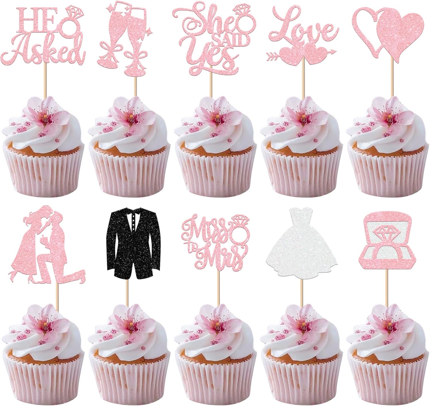 • APPLICATION:Perfect decoration for cupcakes,cookies, cakes, fruits, brownies, ice cream and more,particularly suit to use on bride to be theme party, bridal shower party, groom & bride theme party,wedding engagement party cupcake decorations supplies