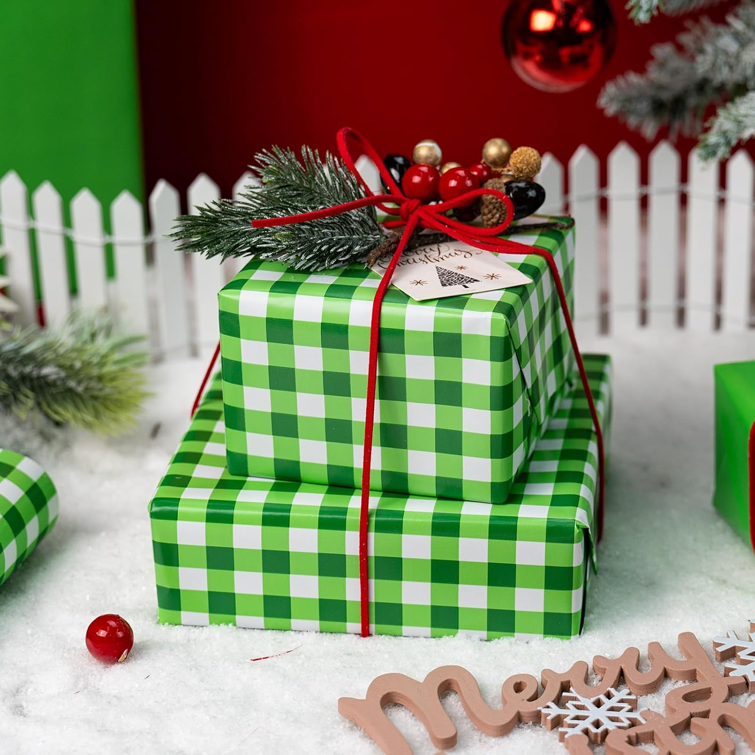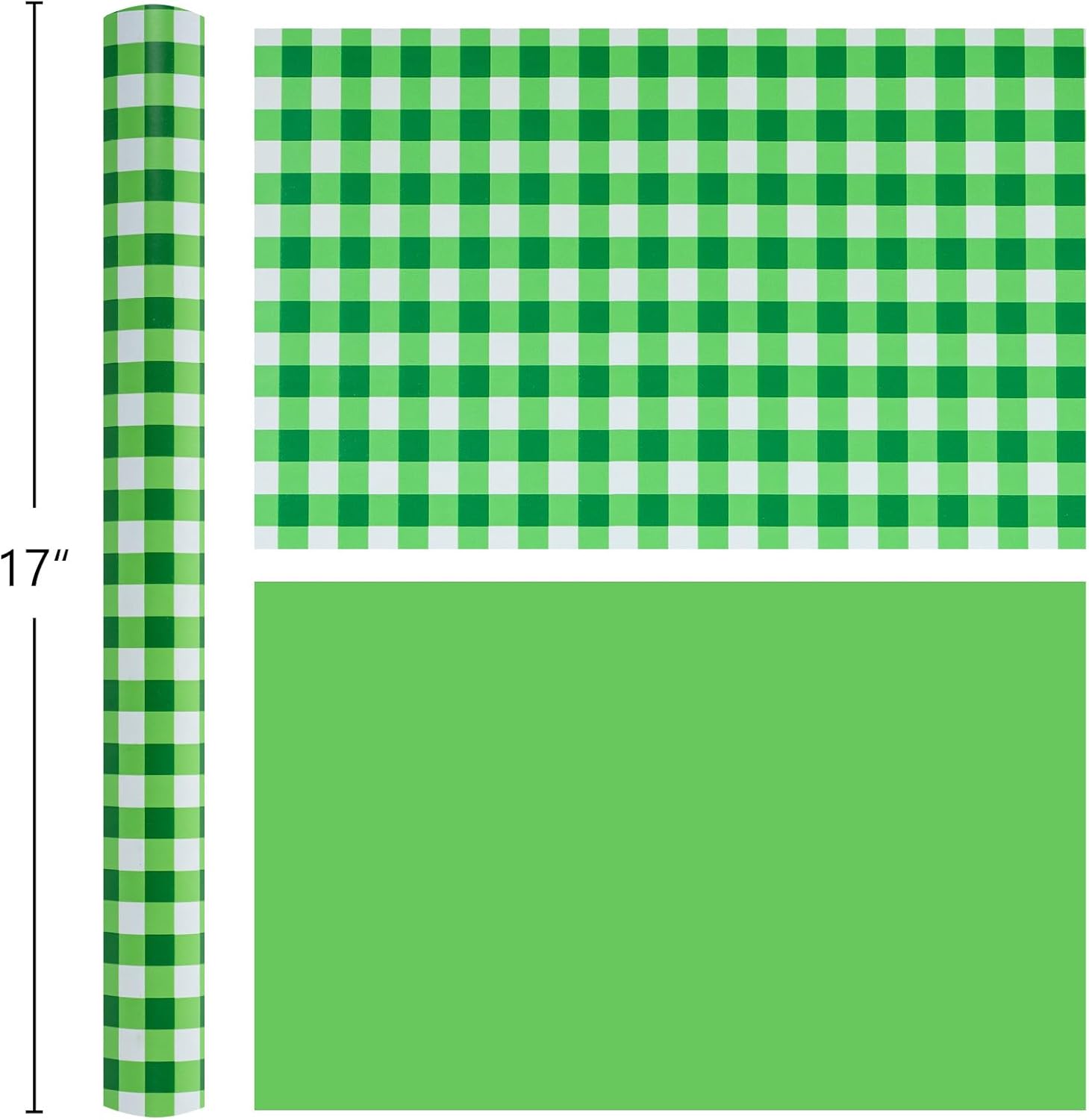 • Wrapping Paper: Features a stylish green checkerboard pattern, making your gift wrap stand out and look extra special. The back has grid lines for easy cutting and less waste