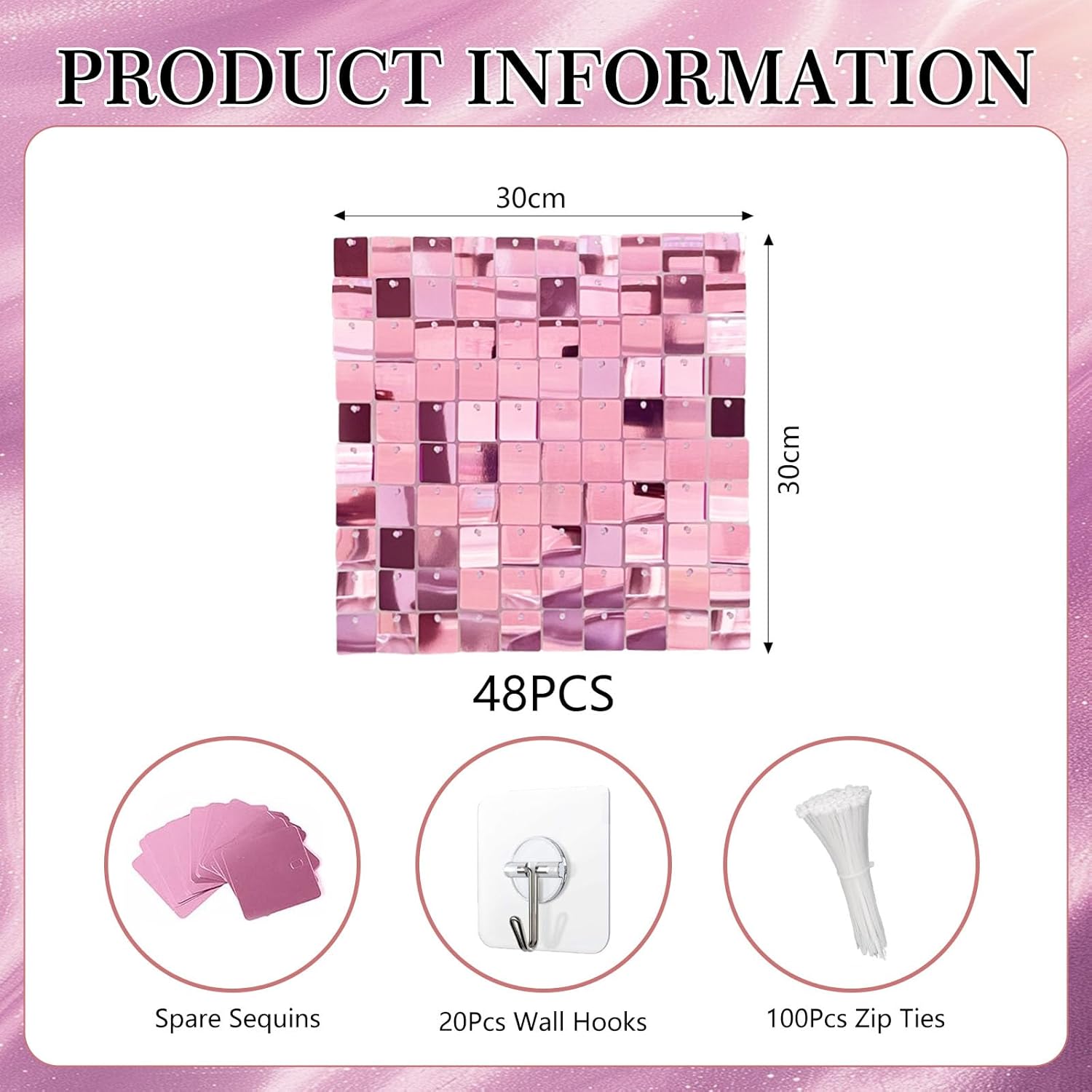 • 【Package Includes】Each box includes 12 light pink wall panels (12"x 12" each). We provide enough zip ties (100 pcs), a pack of spare sequins, and wall hooks (10 pcs) to support the weight of the wind panel, as well as an installation manual. 12pcs can cover 3x4ft place. More boxs will cover a larger area and have a fuller look.