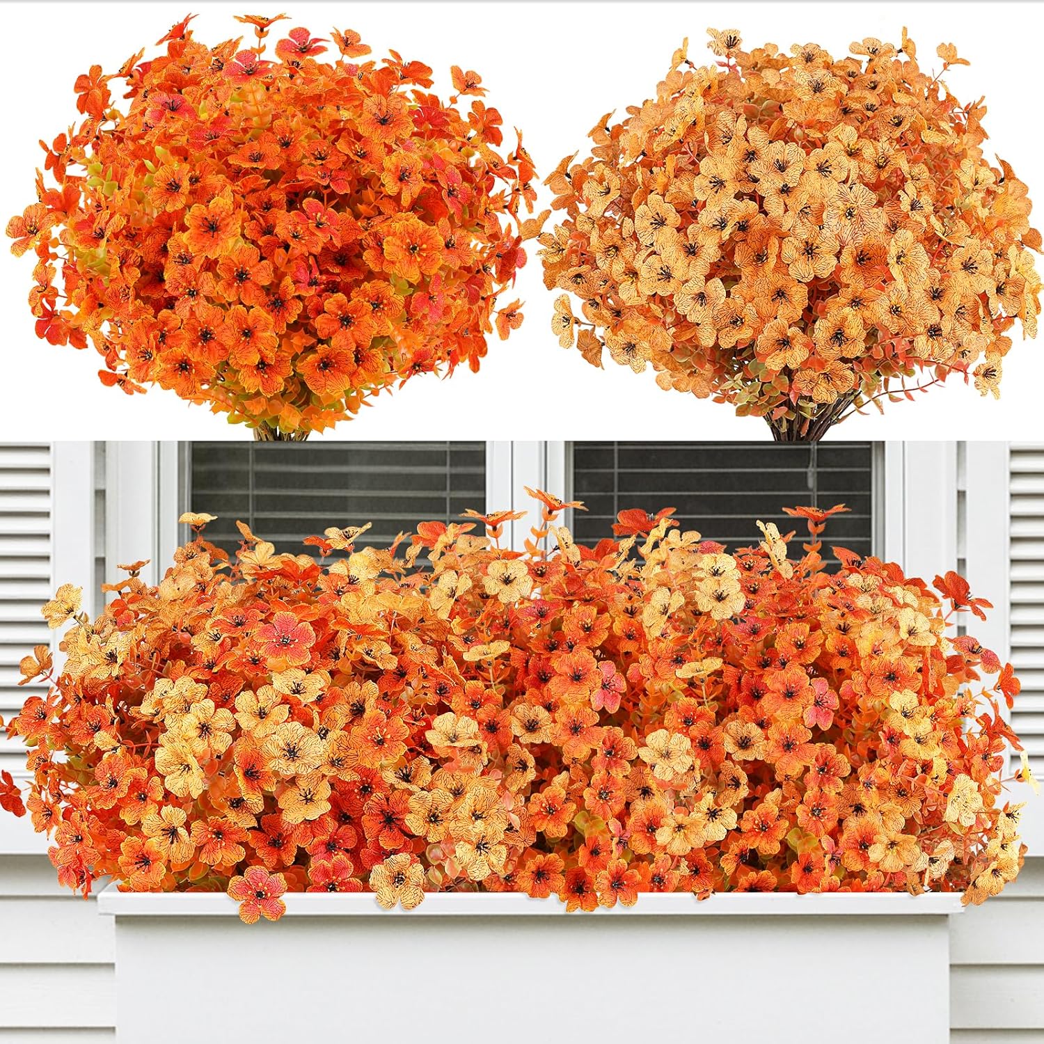 AmyHomie 16 Bundles Fall Orange Yellow Artificial Flowers for Outdoor Fall Decor UV Resistant Faux Flowers No Fade Fake Plastic Plants Garden Porch Window Box Decorating