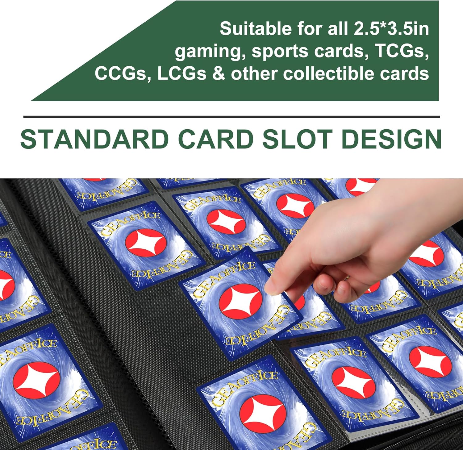 • Fit for Variety Collection Cards - Pocket size: 2.7" x 3.8"(6.8cm x 9.7cm), card album size: 17.5"x 13.3"(44.5 x 33.8cm). Well designed to fit a wide range of standard-sized trading cards, perfect for MTG cards, game cards, TCG cards, sports cards, board game cards, and more.
