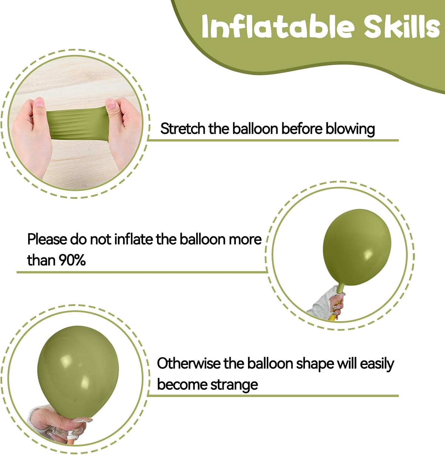 • Balloon material: All balloons are made of natural latex, and each balloon has been strictly hand-tested. The balloons are elastic, non-toxic, harmless and safe. They can be filled with air or helium, and it is recommended to use with a balloon pump