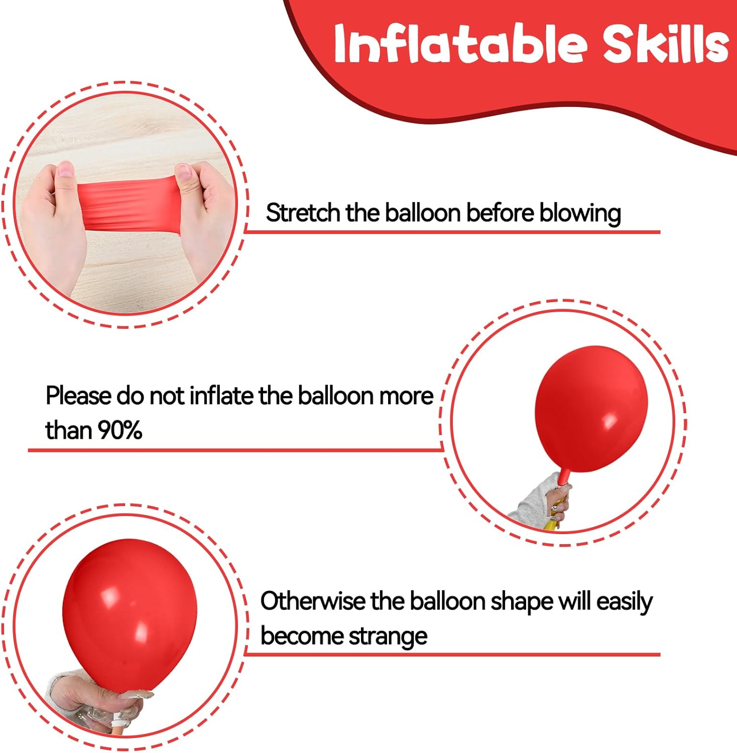 • Balloon material: All balloons are made of natural latex, and each balloon has been strictly hand-tested. The balloons are elastic, non-toxic, harmless and safe. They can be filled with air or helium, and it is recommended to use with a balloon pump