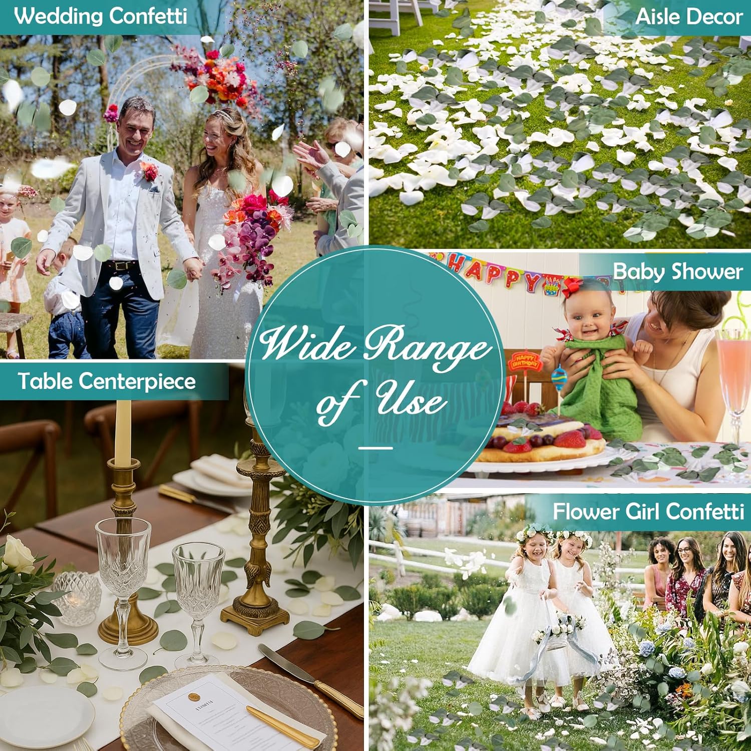 • Generous 200+ Pieces – Embrace Natural Imperfections. Each pack contains 2.12oz (60g) of petals(25g) + leaves(35g) – approx. 200+ pieces with organic texture variations. The white and green mix symbolizes pure love & lasting commitment, perfect for: Wedding table scatters; Baby shower Centerpieces; Valentine’s proposal surprises.