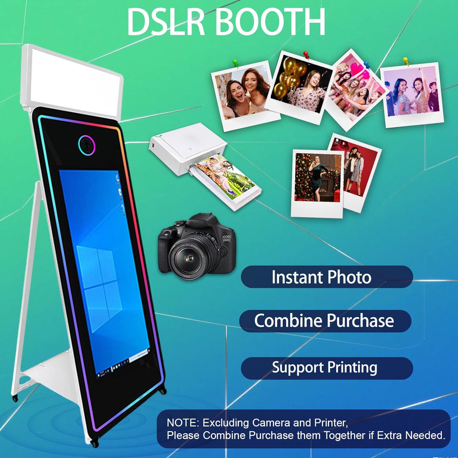 • PORTABLE MAGIC MIRROR PHOTO BOOTH: This DSLR photo booth stands out with its portable and lightweight features,reducing overall weight, Digital photo booth machine is made of solid metal material,which is not easy to rust and deform. The whole is designed with a detachable structure and equipped with a high-quality flight case with wheels can be carried around easily