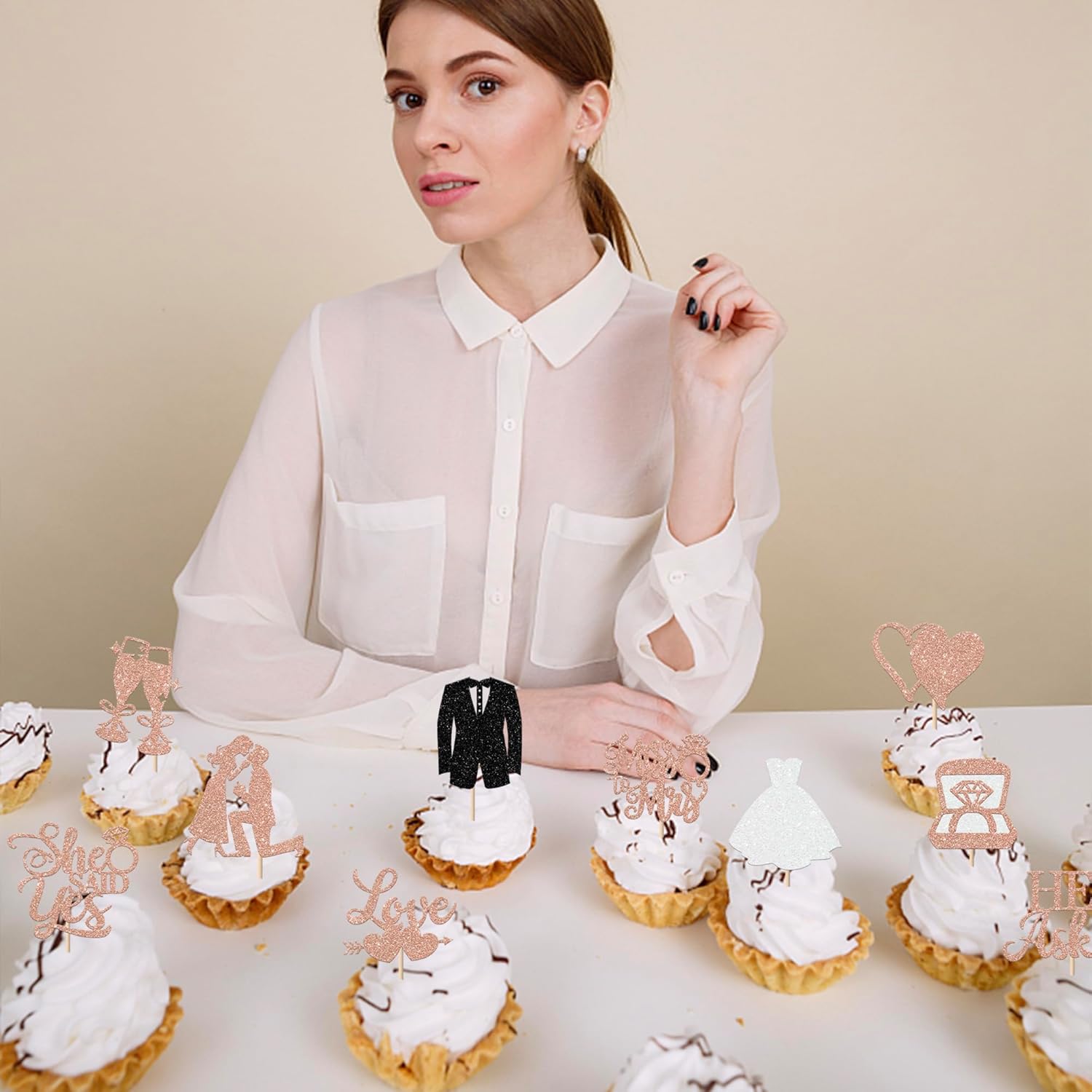 • APPLICATION:Perfect decoration for cupcakes,cookies, cakes, fruits, brownies, ice cream and more,particularly suit to use on bride to be theme party, bridal shower party, groom & bride theme party,wedding engagement party cupcake decorations supplies