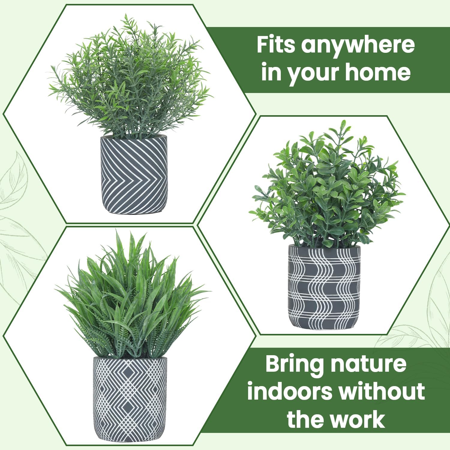 • Versatile Home & Office Decor: Compact and lightweight, these small faux plants are ideal for brightening up your windowsill, desk, shelf, kitchen, bathroom, or office. Whether placed individually or as a set, they instantly elevate any space with a touch of greenery and a modern farmhouse aesthetic