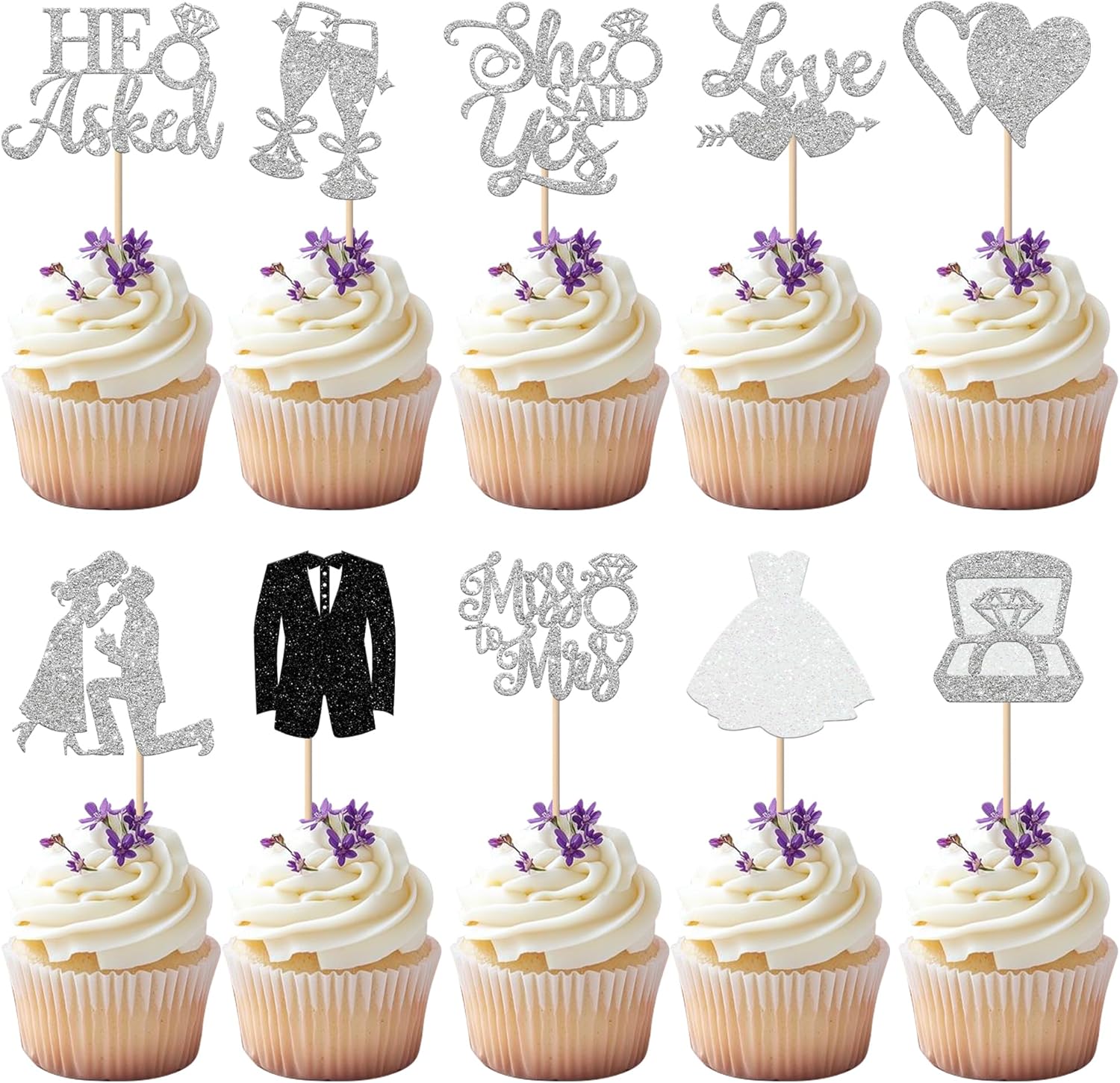 • APPLICATION:Perfect decoration for cupcakes,cookies, cakes, fruits, brownies, ice cream and more,particularly suit to use on bride to be theme party, bridal shower party, groom & bride theme party,wedding engagement party cupcake decorations supplies