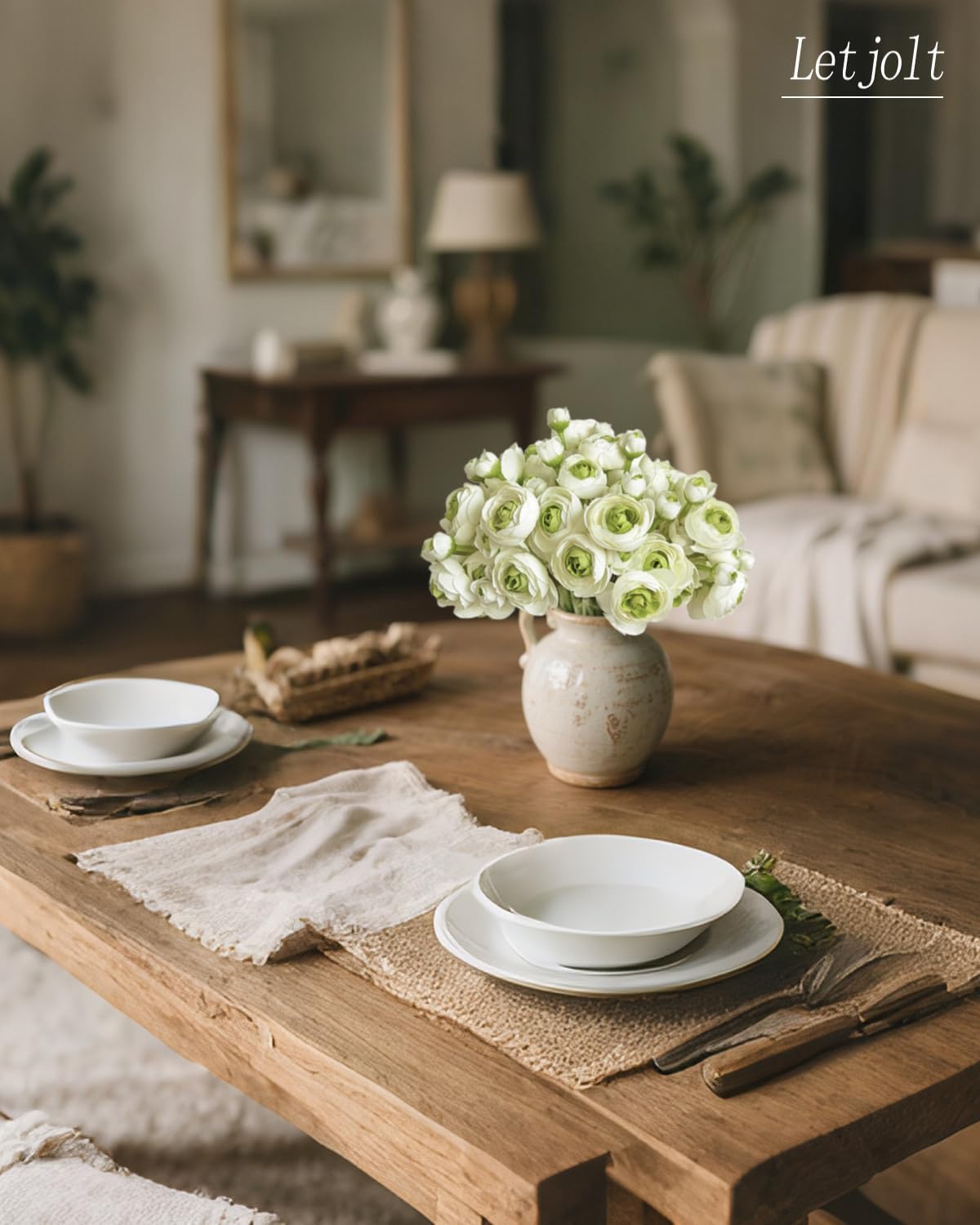 • Material: Ranunculus flowers are made of silk, and the stems are made of plastic.